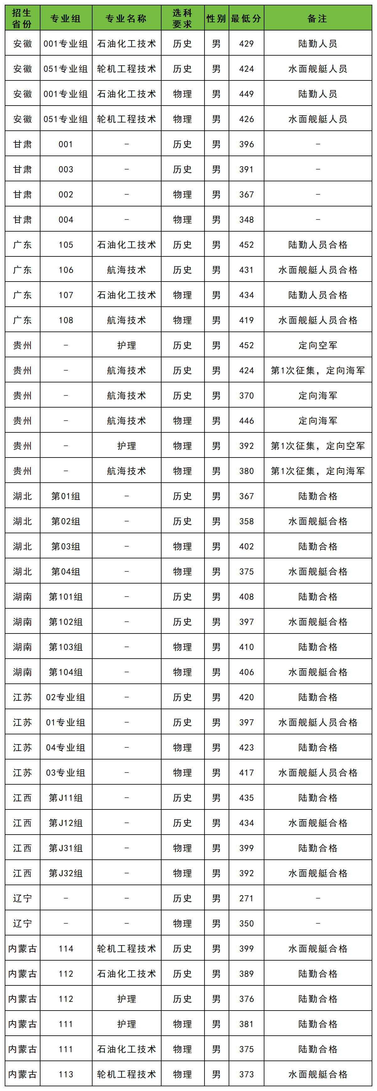下面是滨州职业学院2025年在全国各省定向士官招生分数线一览表,供参考: