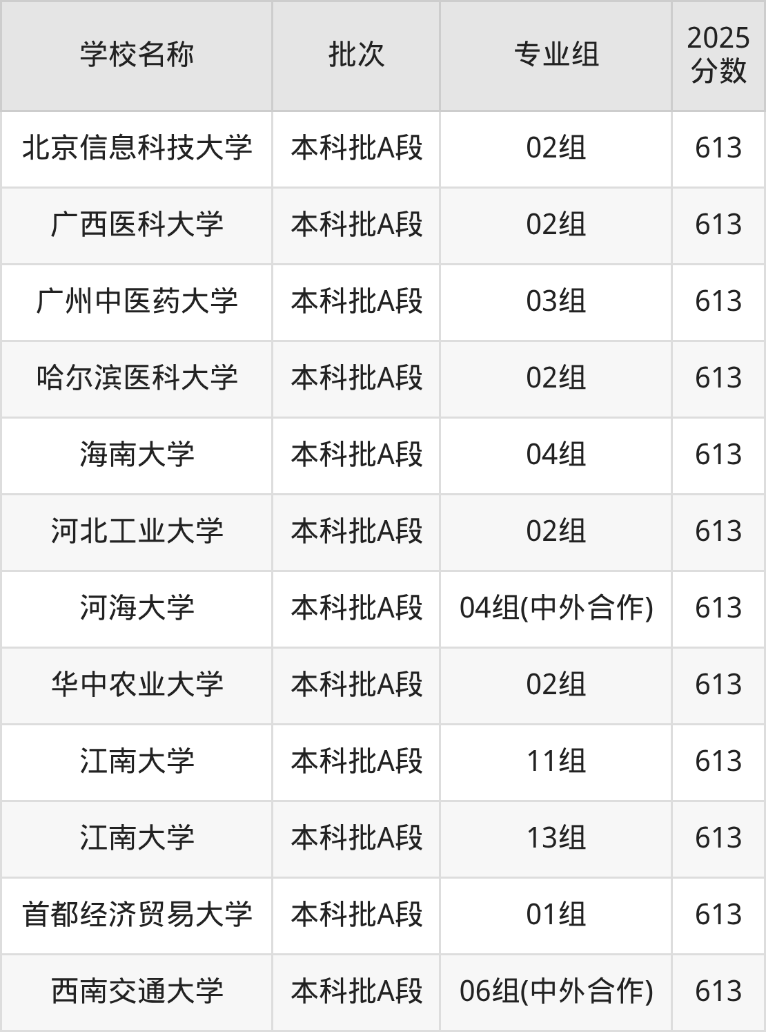 二、613分左右的好大学名单