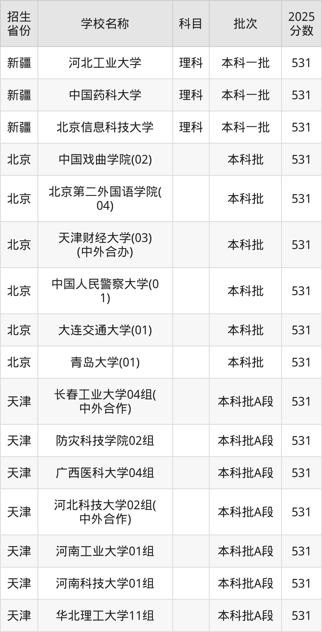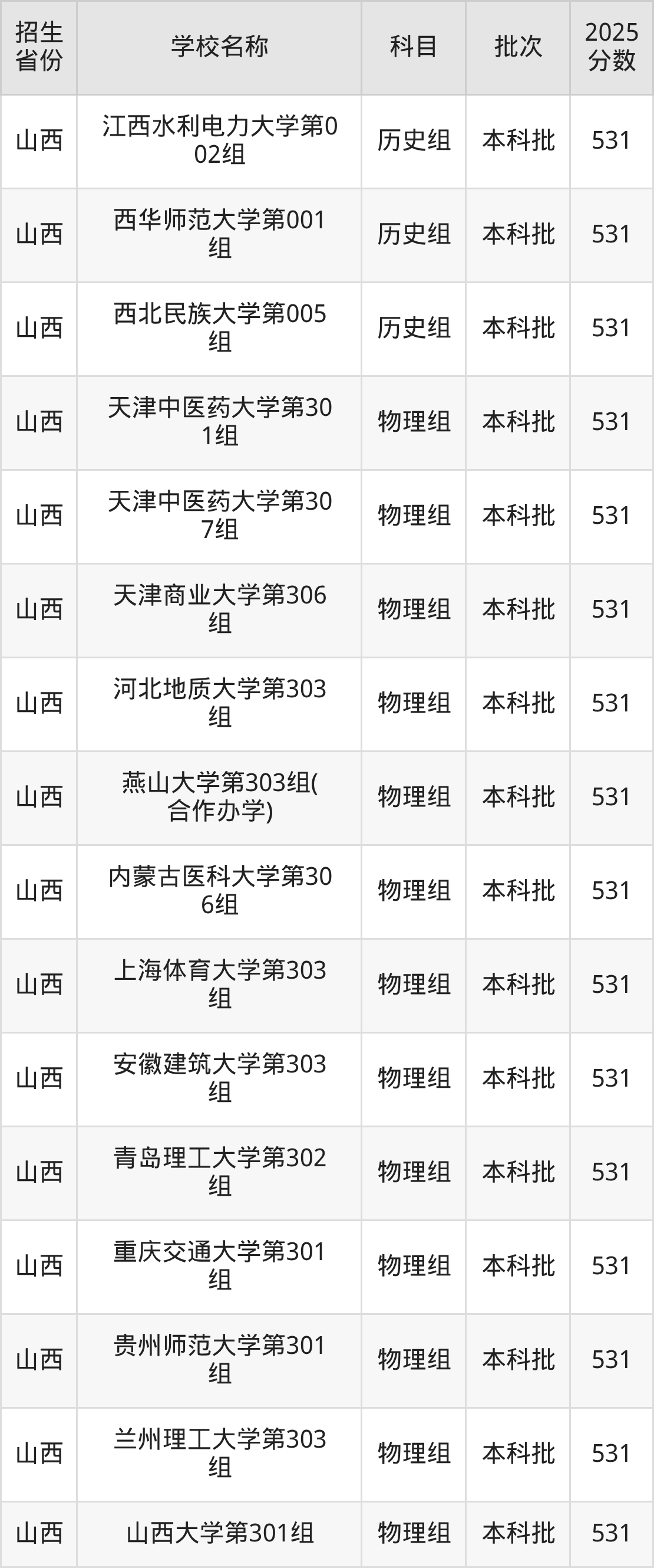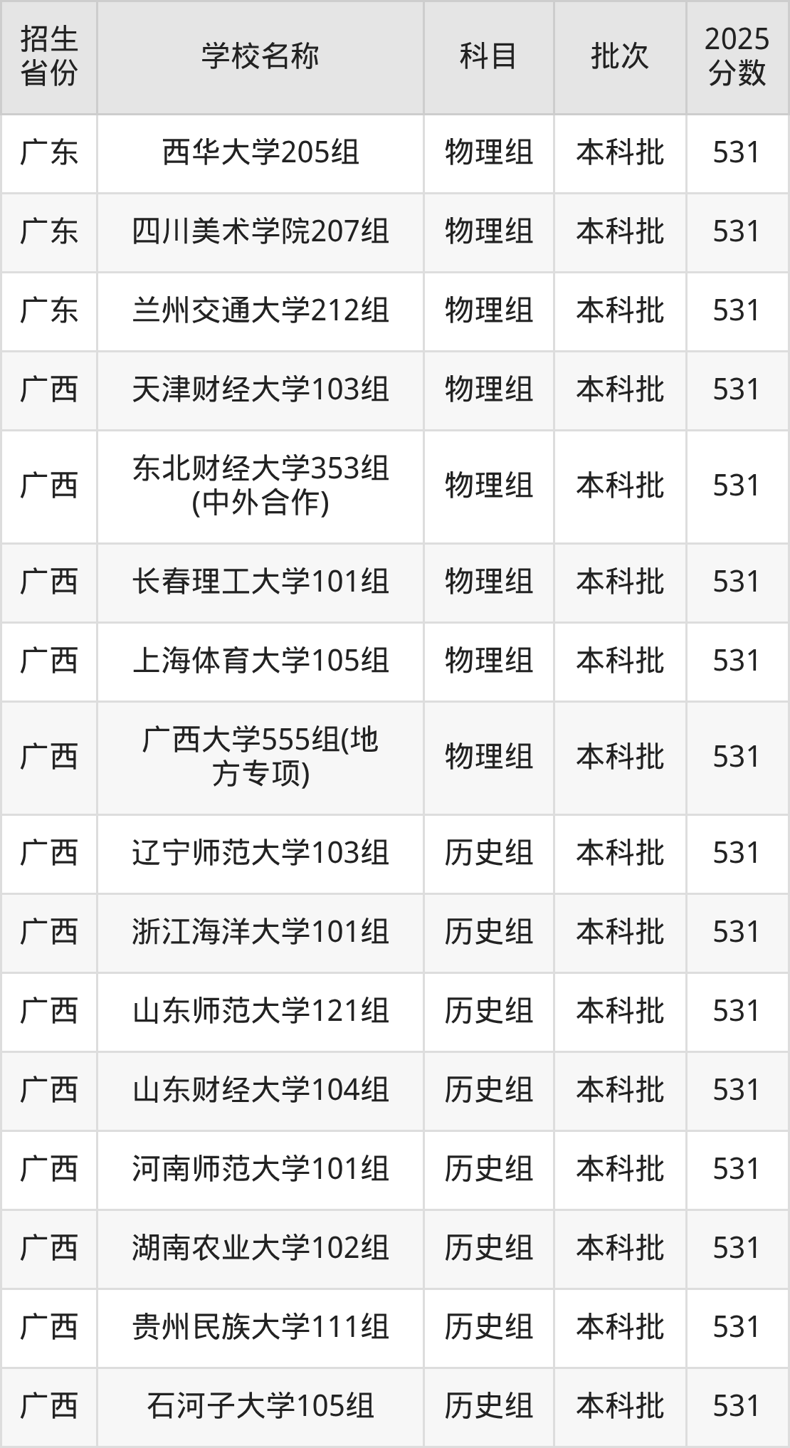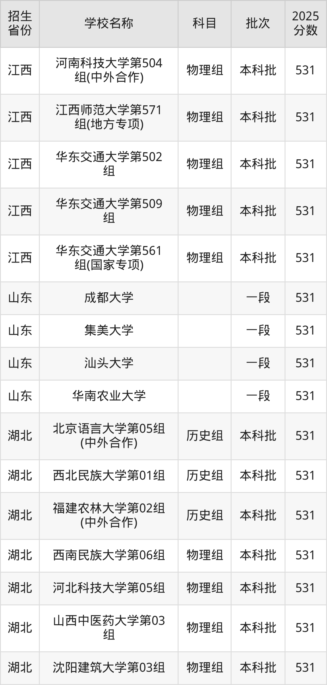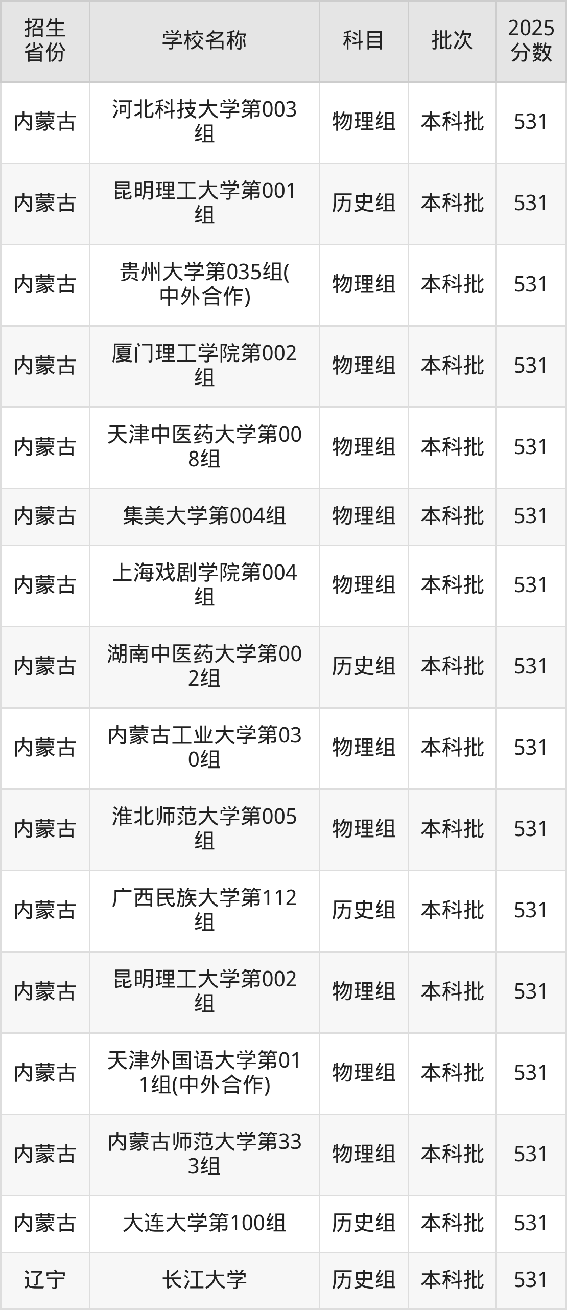 筛选全国各省2025年录取分数线为531分的重点大学如下: