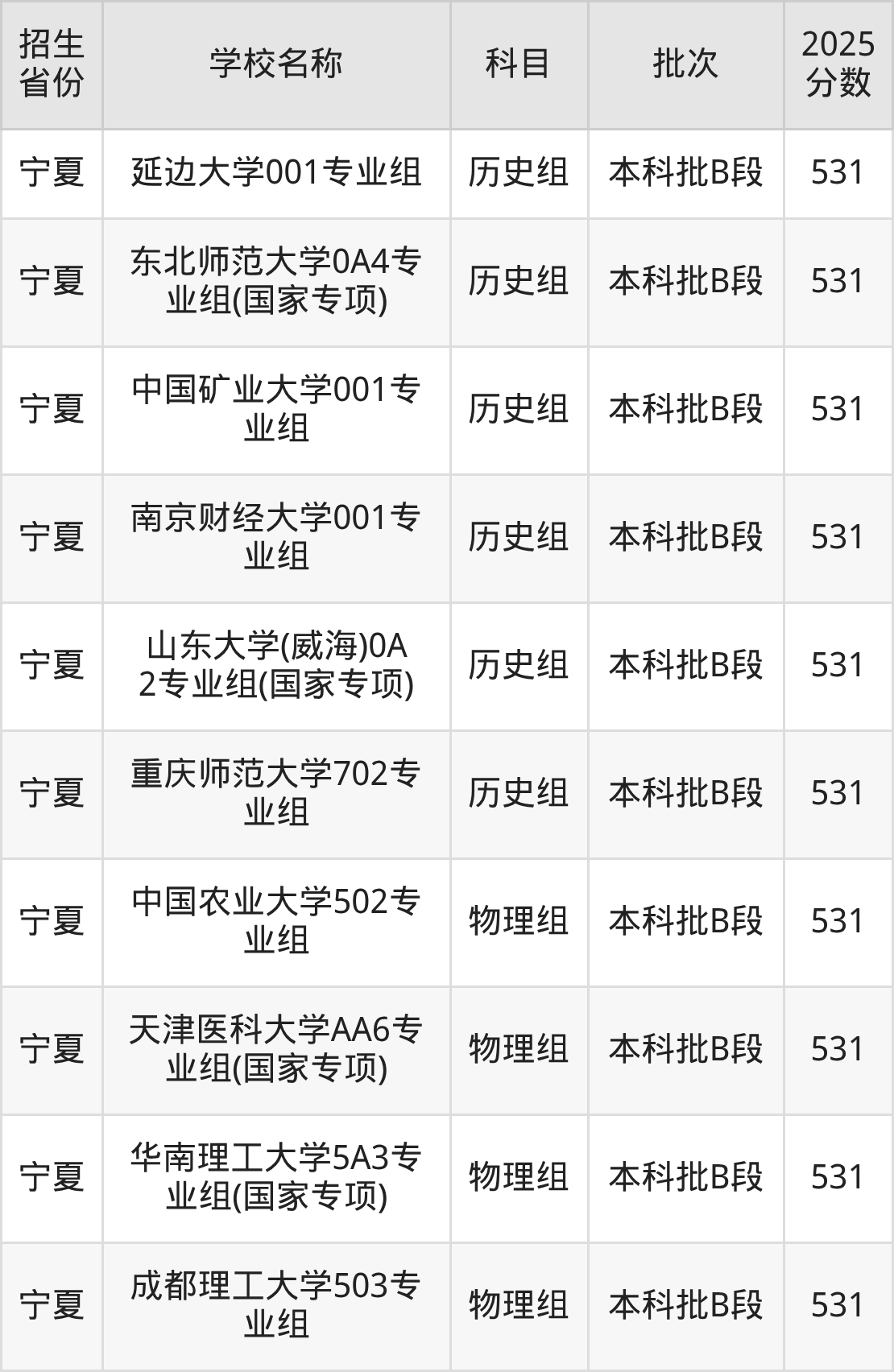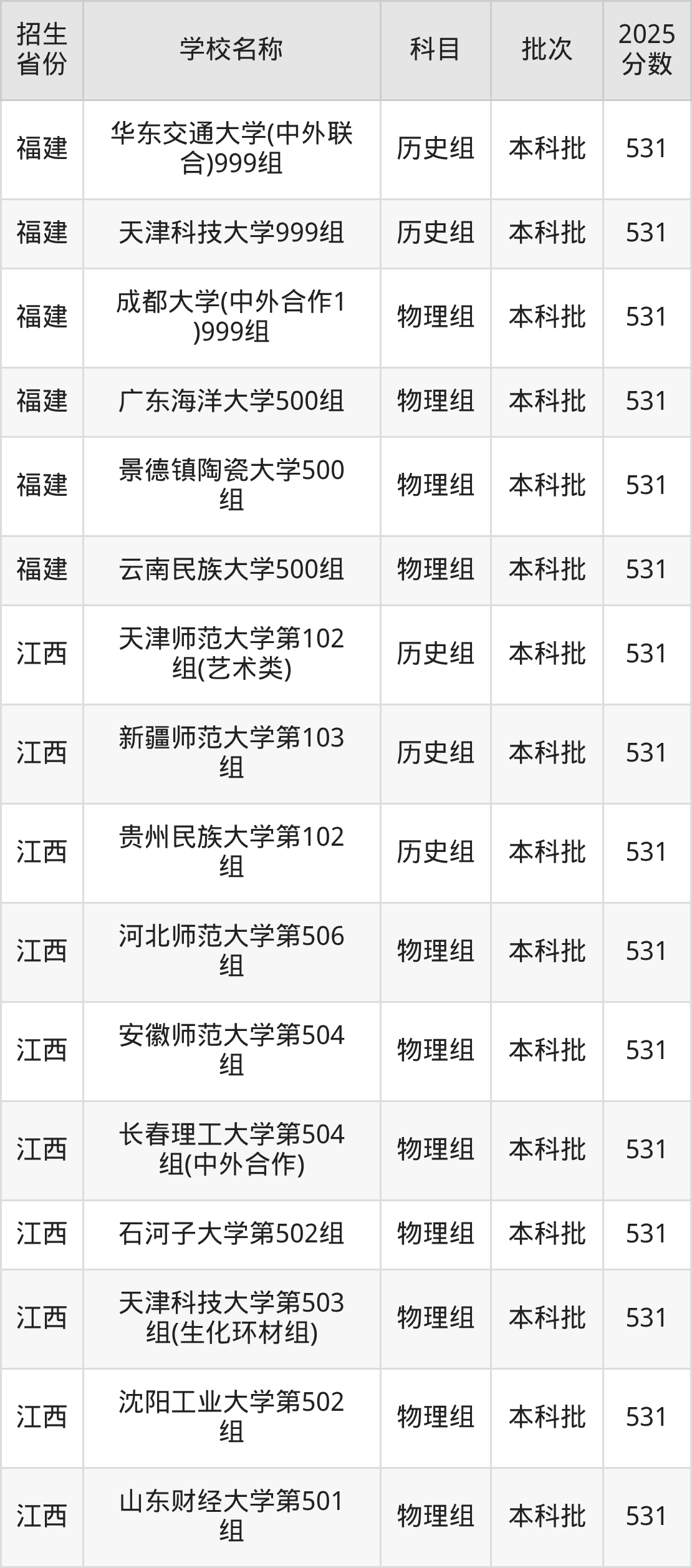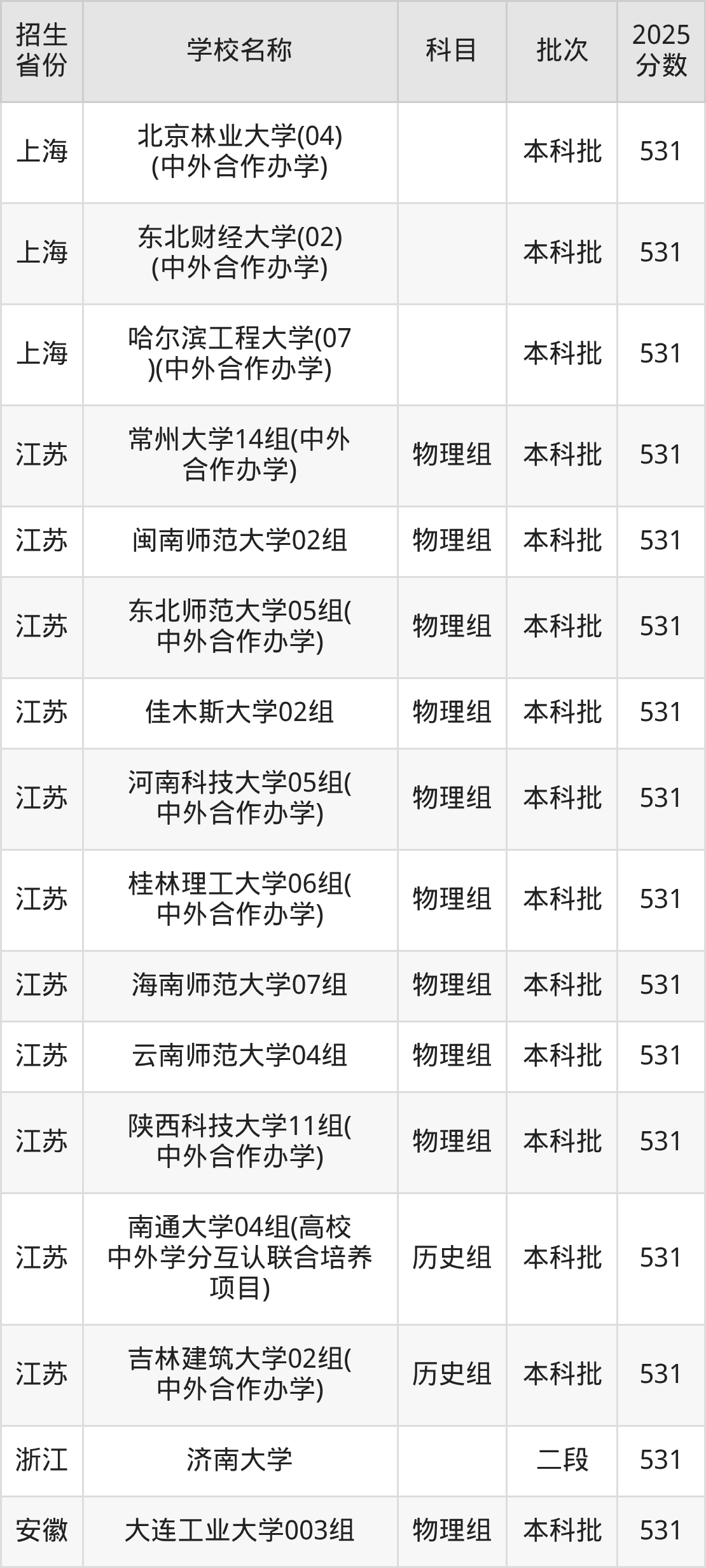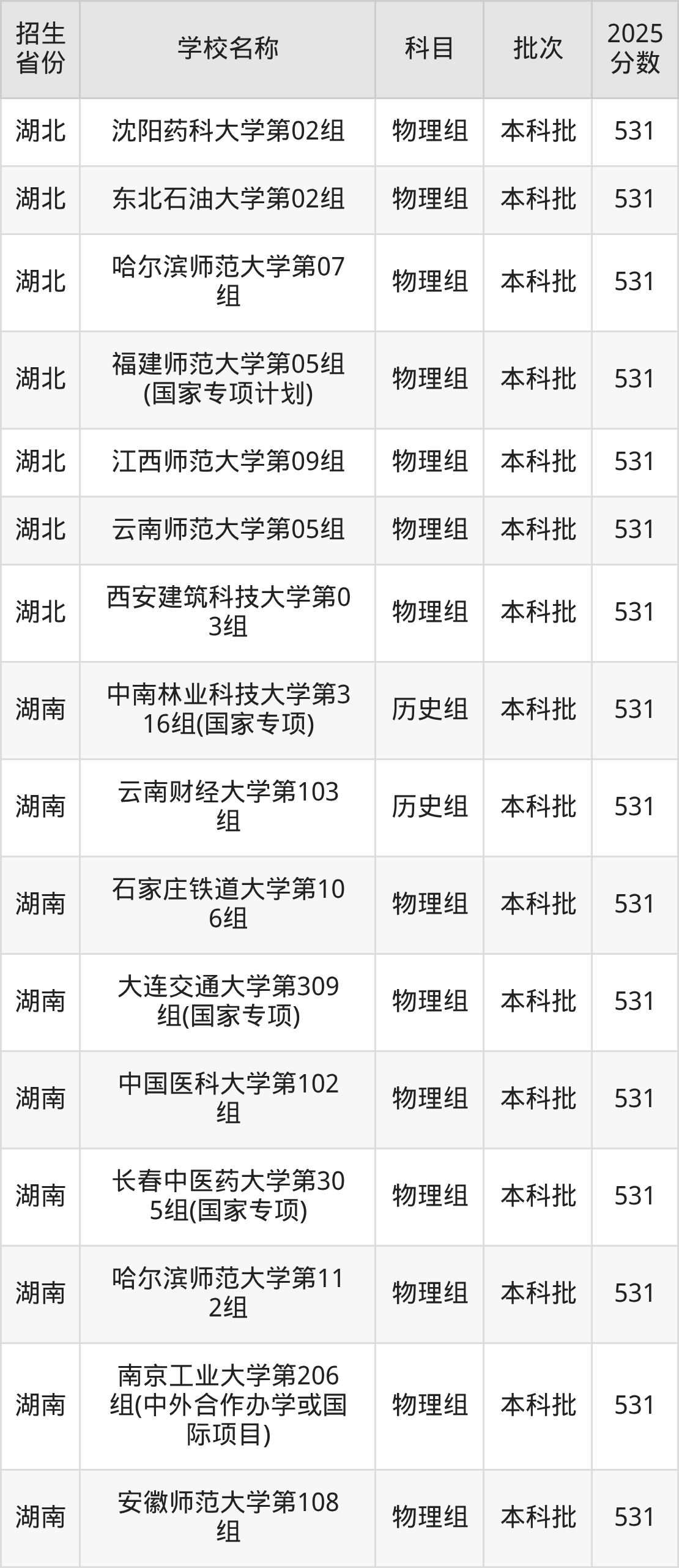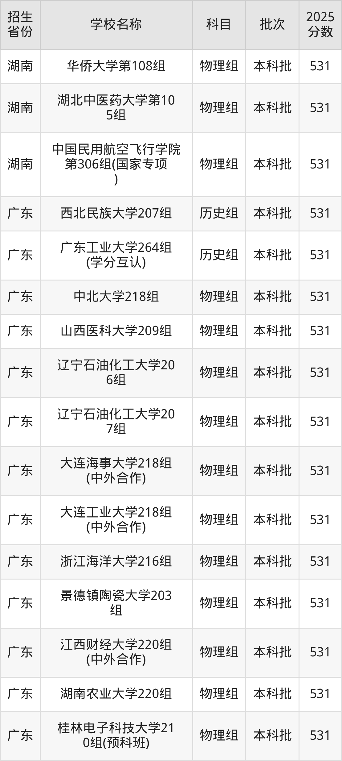 筛选全国各省2025年录取分数线为531分的重点大学如下: