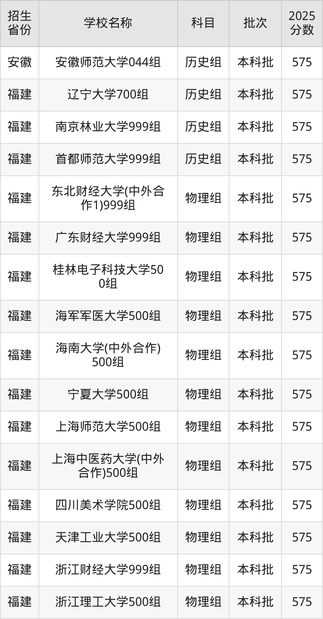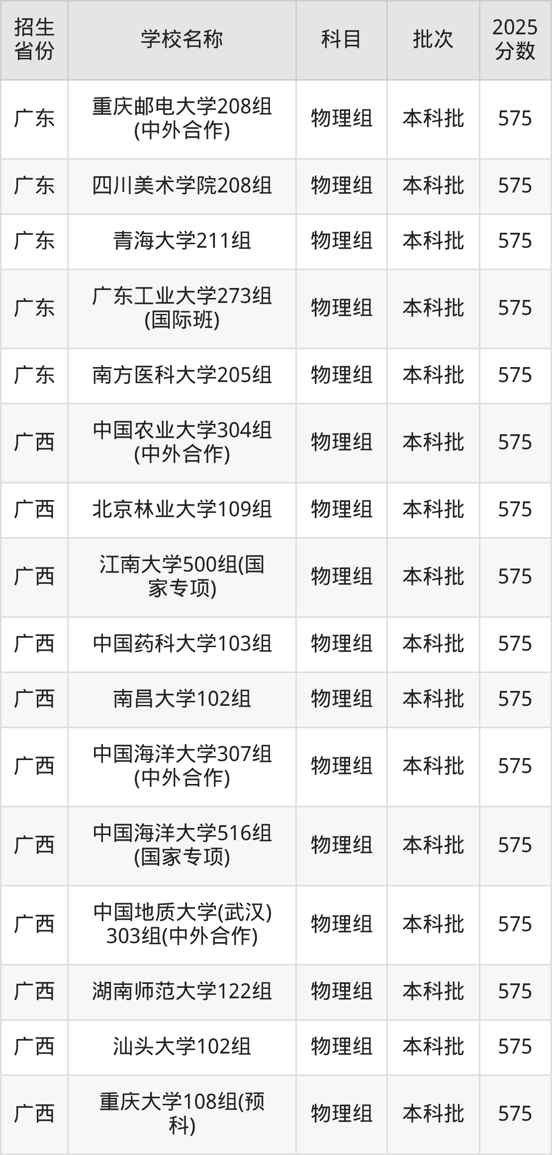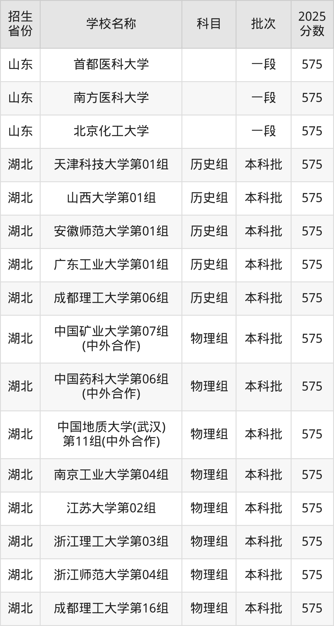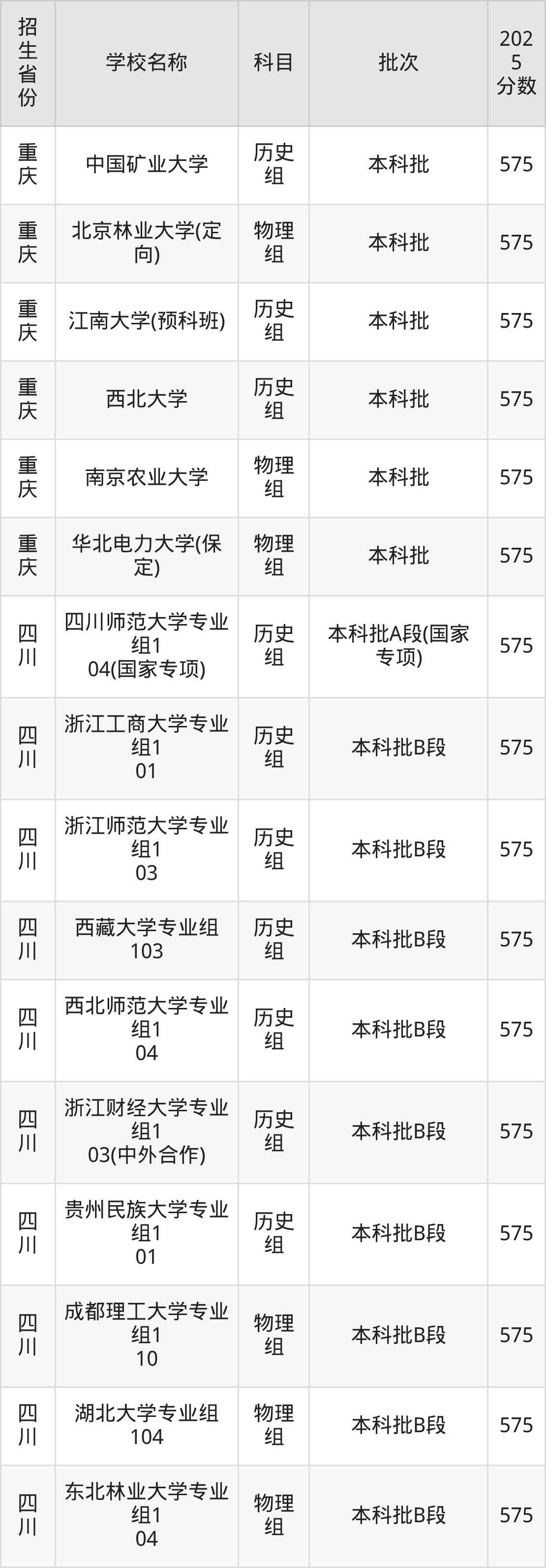筛选全国各省2025年录取分数线为575分的重点大学如下: