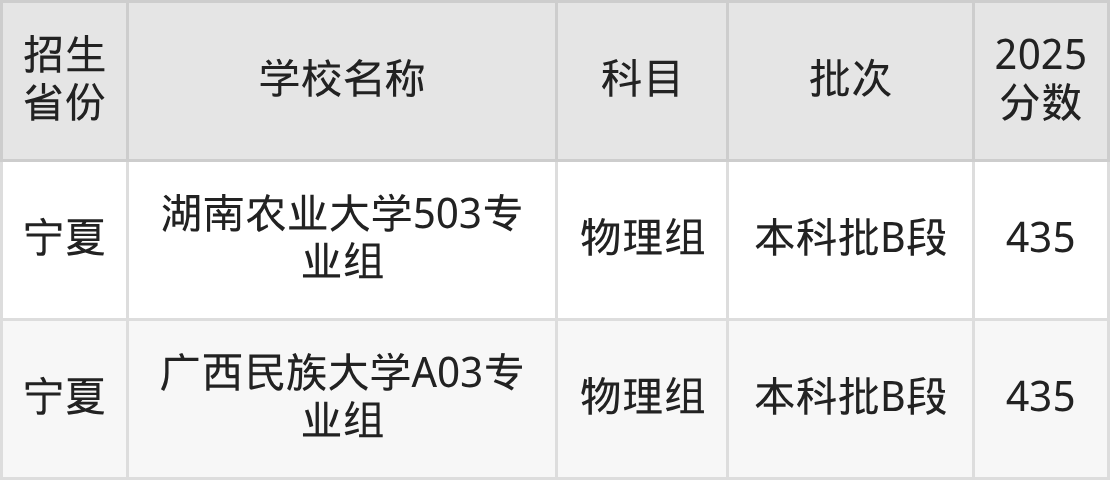 宁夏回族自治区物理组分数线是435分的重点大学有:沈阳农业大学、江西农业大学、山东农业大学、湖北中医药大学、湖南农业大学、广西民族大学。