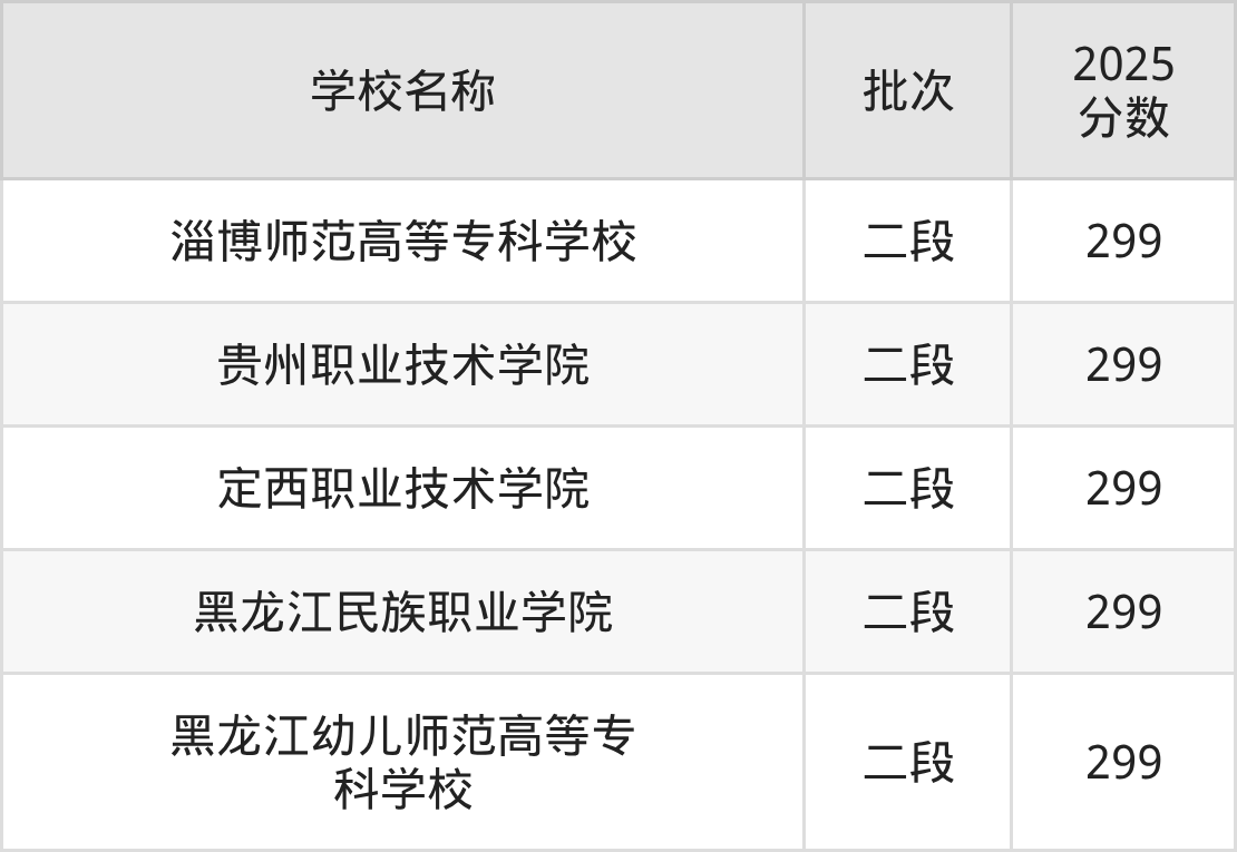高考299分能上的大学有黑龙江民族职业学院、贵州职业技术学院、淄博师范高等专科学校等。本文将为大家带来299分的好大学名单,供2026年的考生参考。