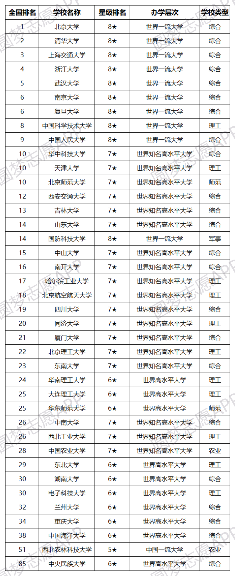 2022年全国985大学全部排名名单一览: