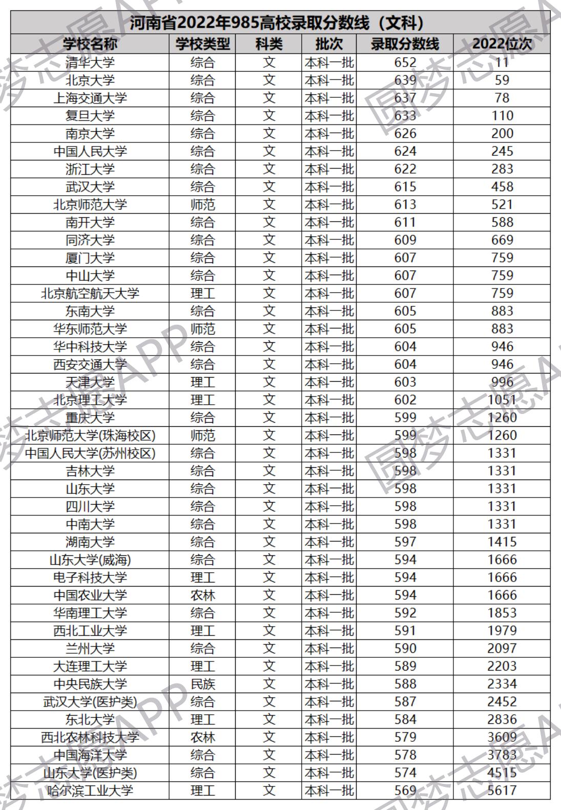 2022年河南文科分数线较高的985大学有: