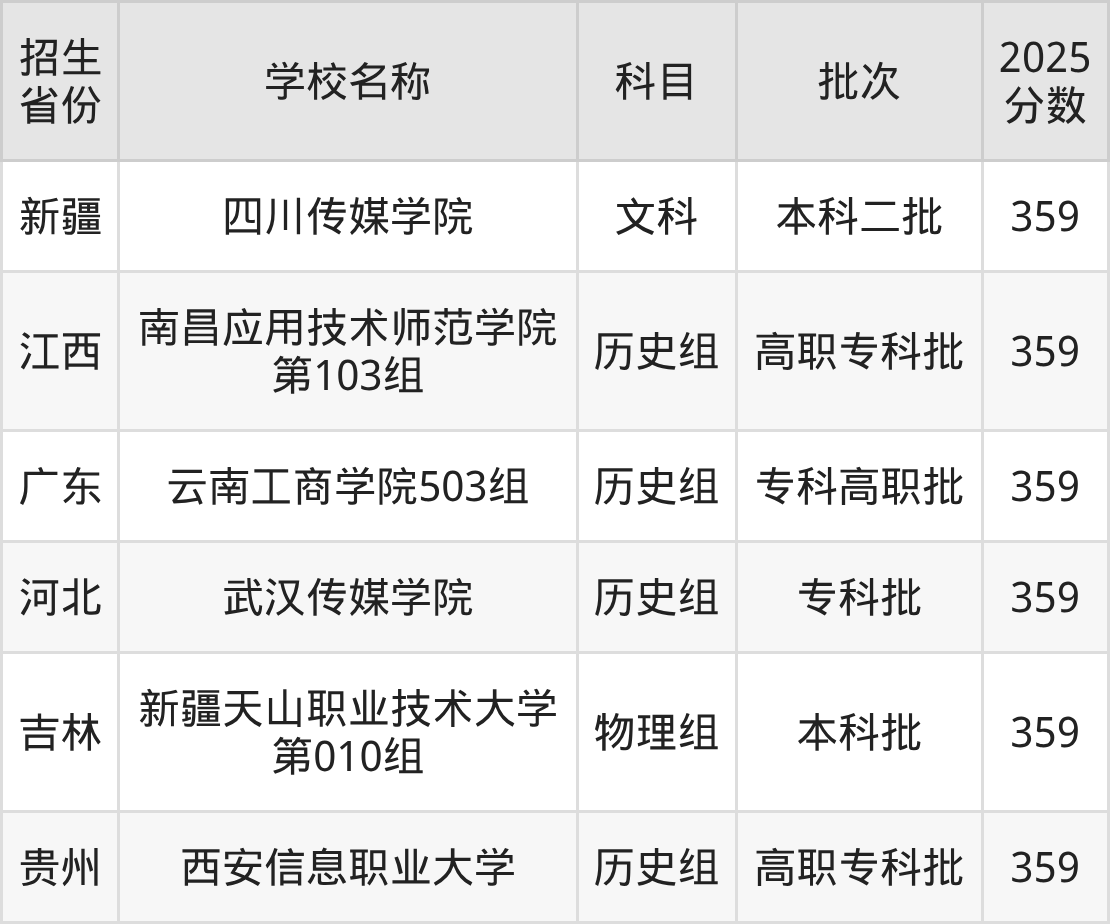 筛选全国各省2025年录取分数线为359分的二本民办大学如下: