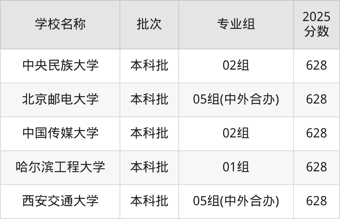 北京高考录取分数线在628分左右的公办大学一共有5所。分别是中央民族大学(628分)、北京邮电大学(628分)、中国传媒大学(628分)