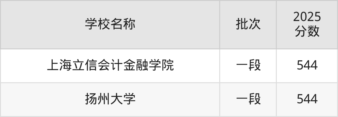 山东高考录取分数线在544分左右的公办大学一共有2所。分别是上海立信会计金融学院(544分)、扬州大学(544分)