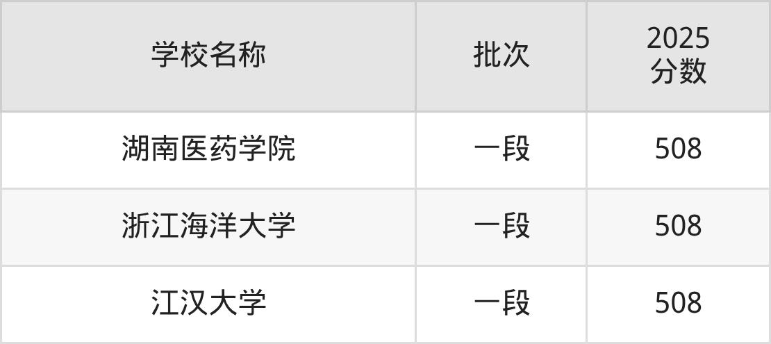 山东高考录取分数线在508分左右的公办大学一共有3所。分别是湖南医药学院(508分)、浙江海洋大学(508分)、江汉大学(508分)