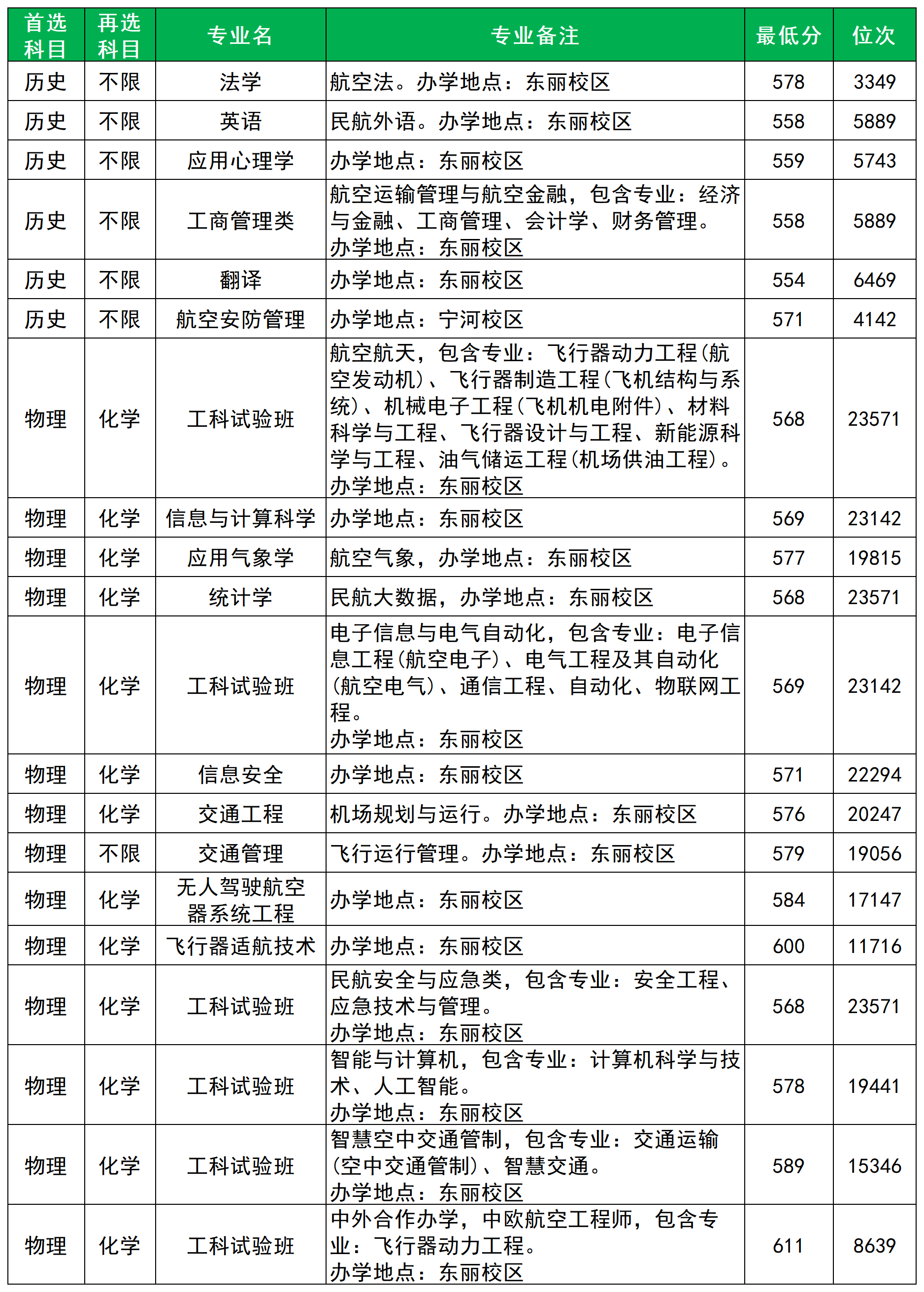 历史类最低分554分,超特控线40分,对应位次6469;物理类最低分568分,超特控线70分,对应位次23571。