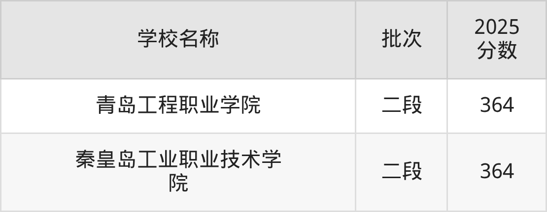 山东高考录取分数线在364分左右的公办大学一共有2所。分别是青岛工程职业学院(364分)、秦皇岛工业职业技术学院(364分)