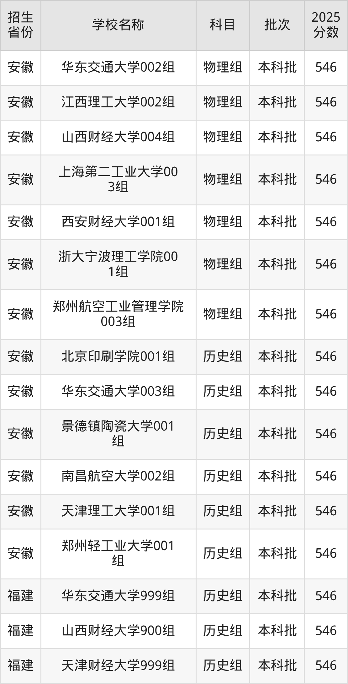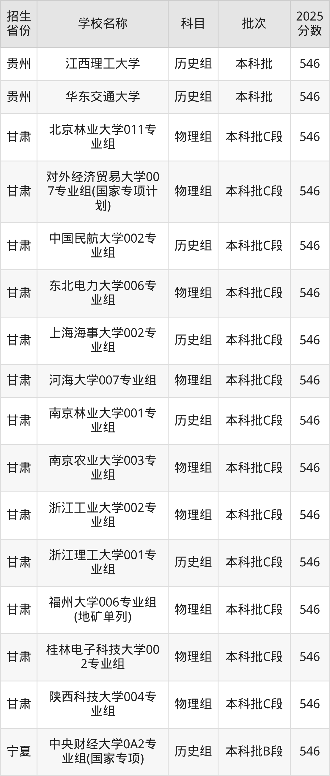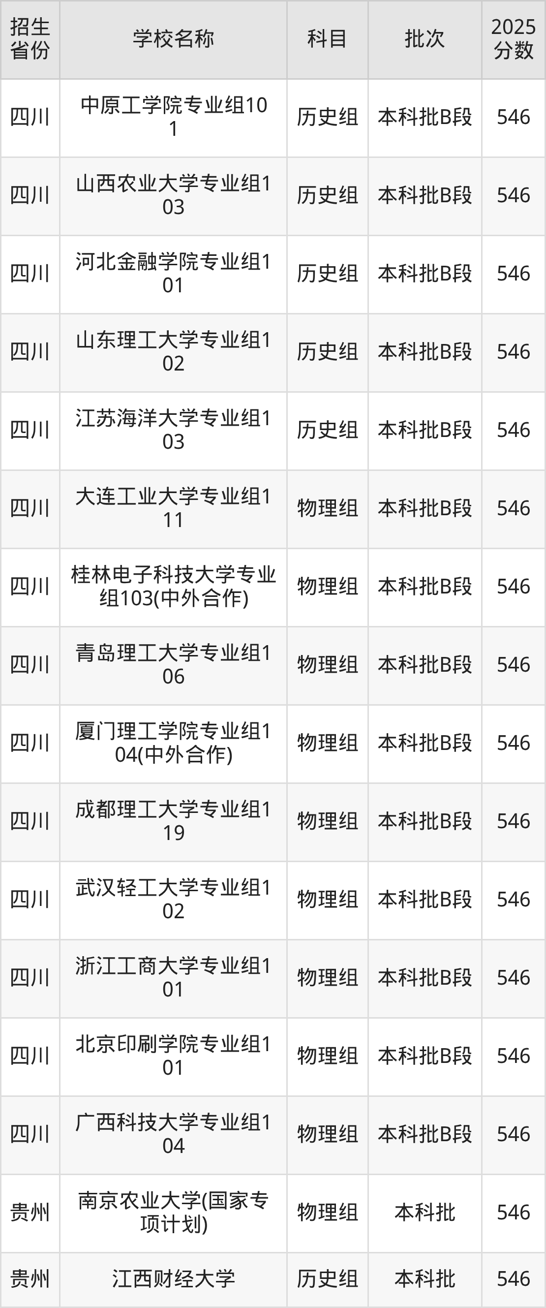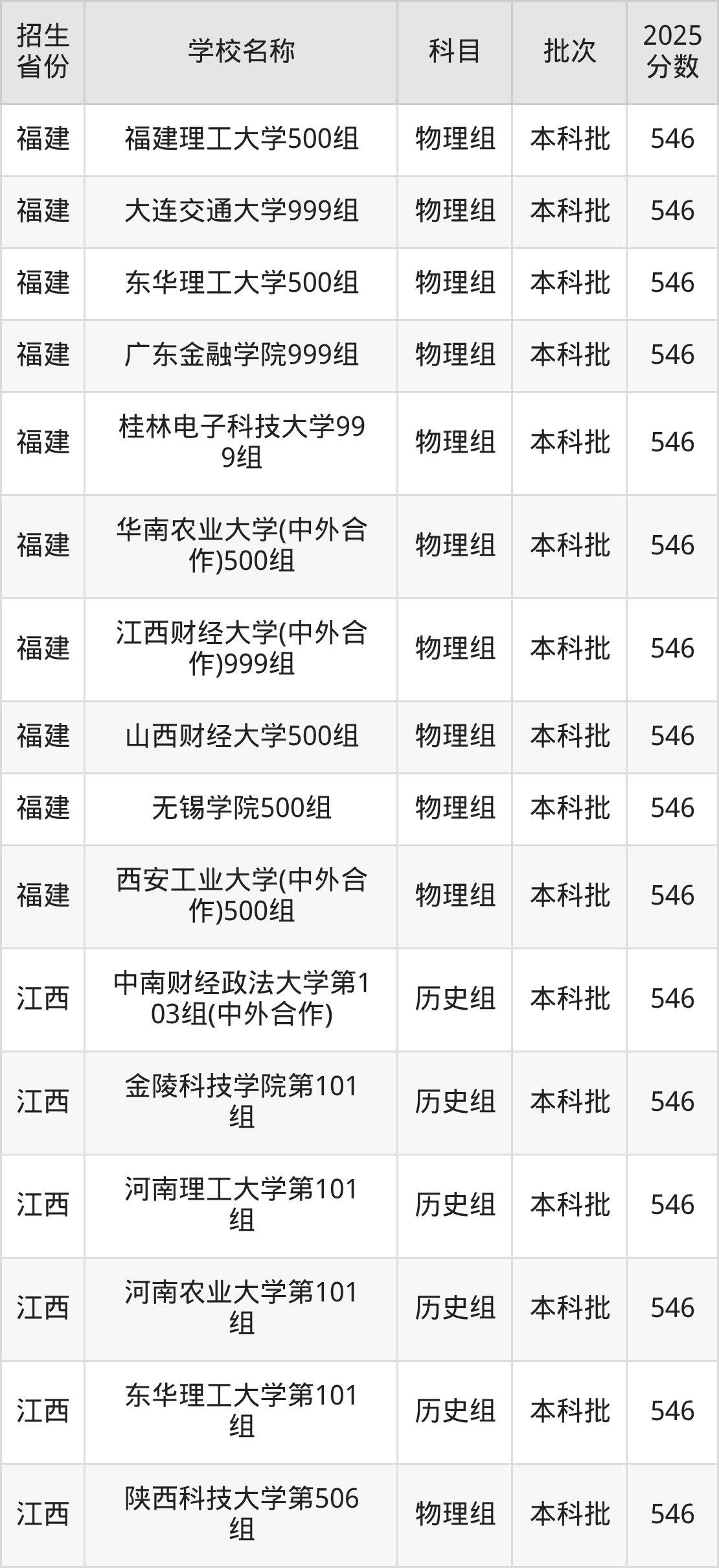 筛选全国各省2025年录取分数线为546分的理科大学如下: