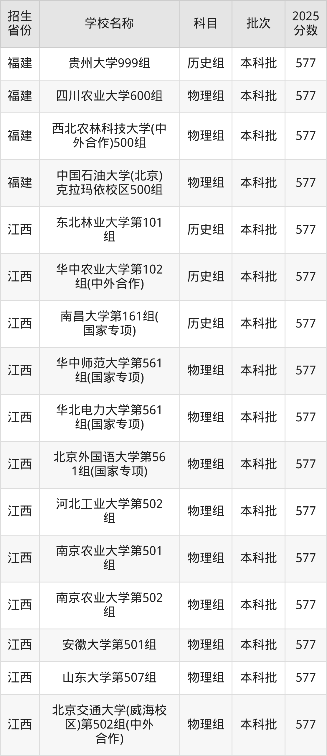 江西省历史组分数线是577分的211大学有:东北林业大学、华中农业大学、南昌大学。