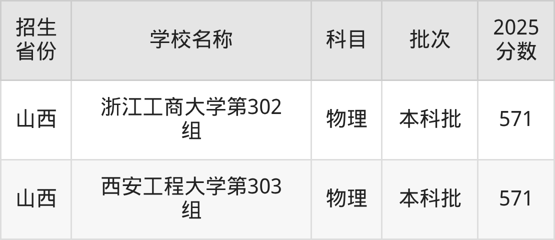 山西省物理组分数线是571分的理科大学有:北京科技大学、沈阳工业大学、上海应用技术大学、浙江工商大学、西安工程大学。