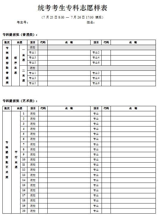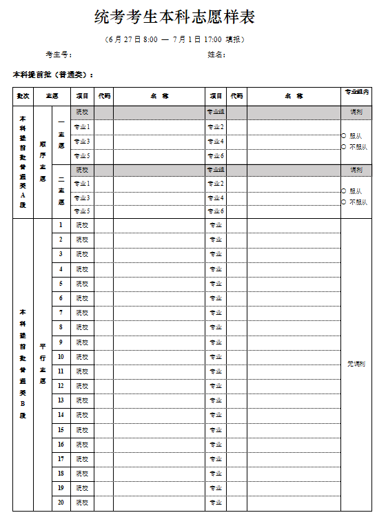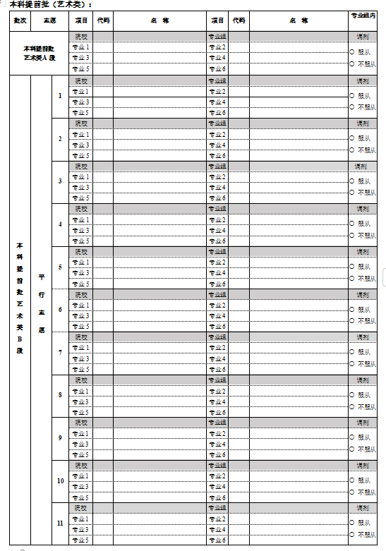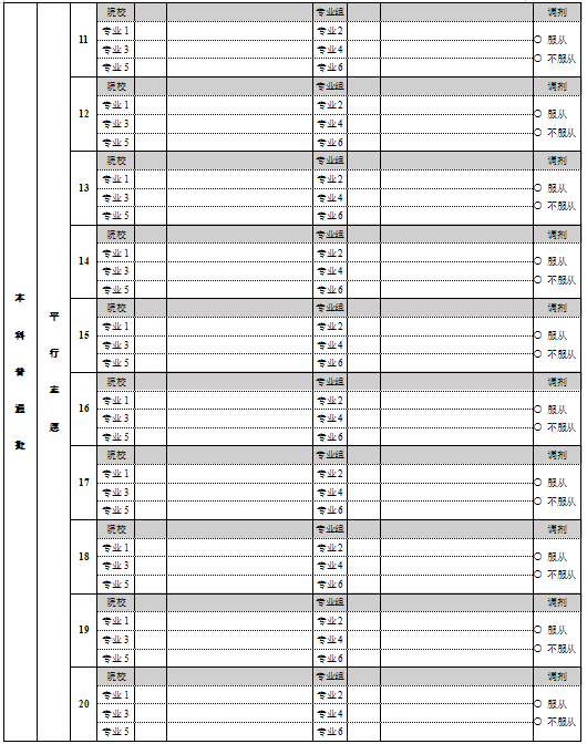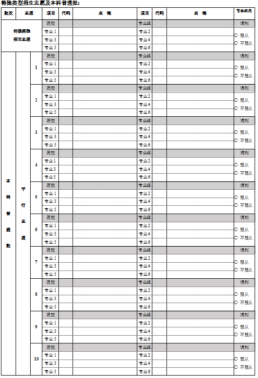 三、北京高考志愿填报样表