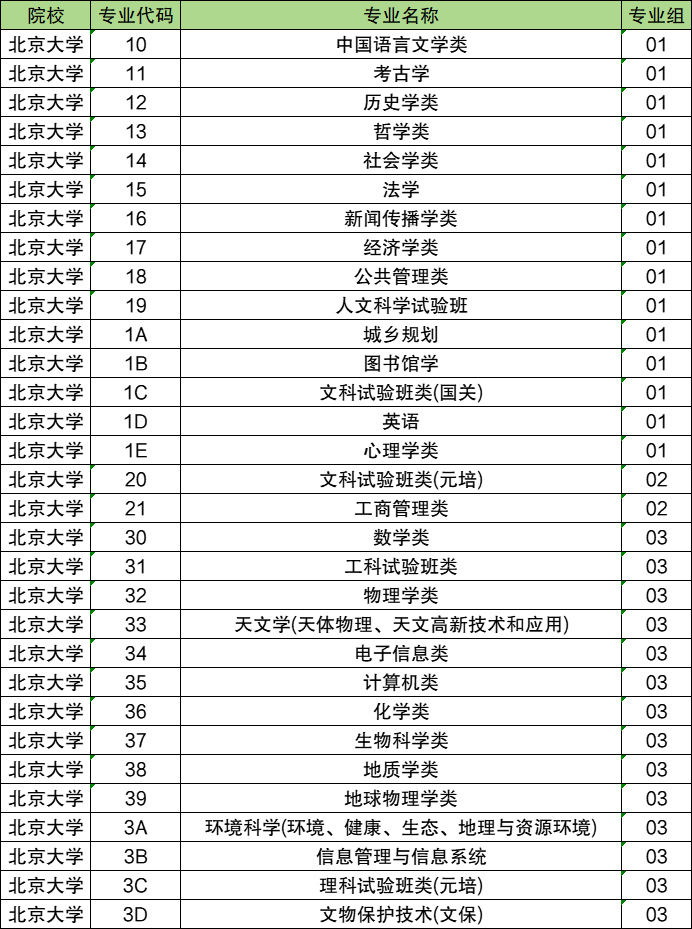 下面是2025年北京大学本科普通批所有专业代号一览表,供参考: