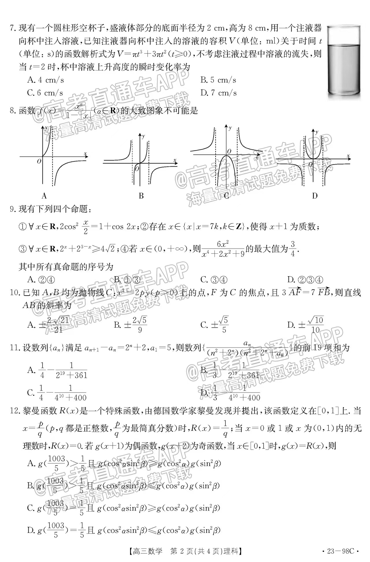 一、2023江西金太阳高三10月大联考23-98c理科数学试卷