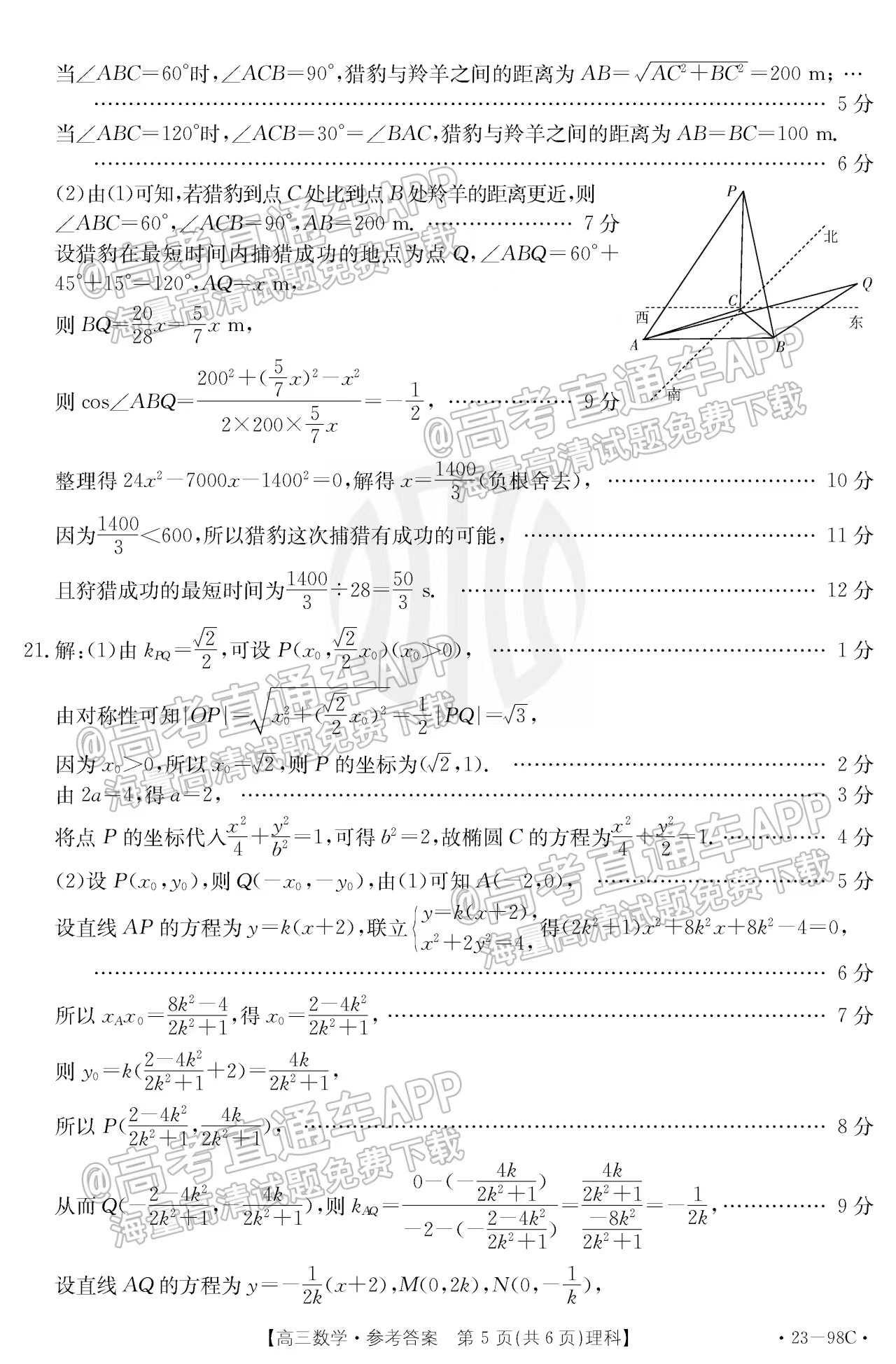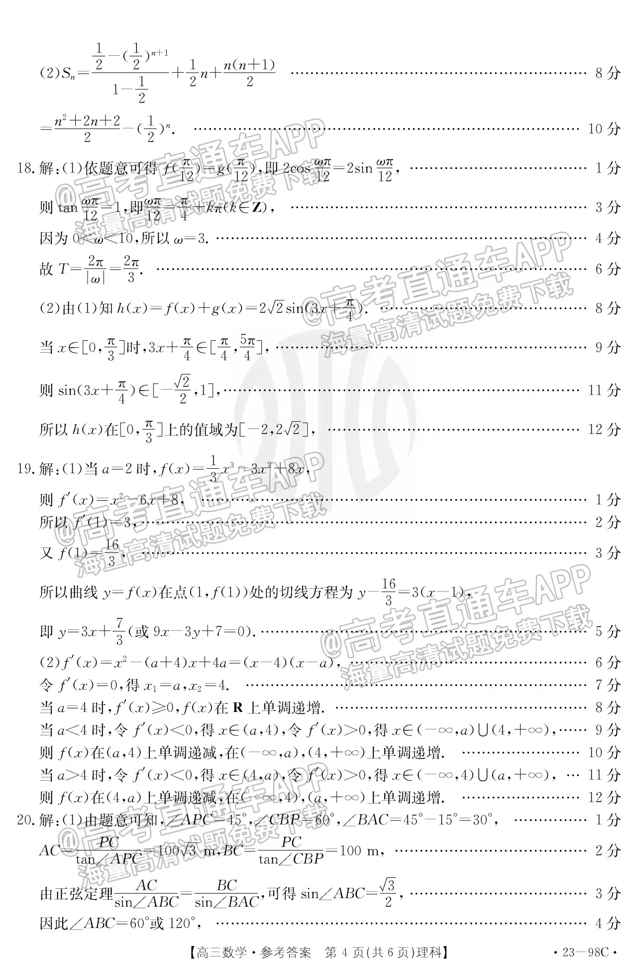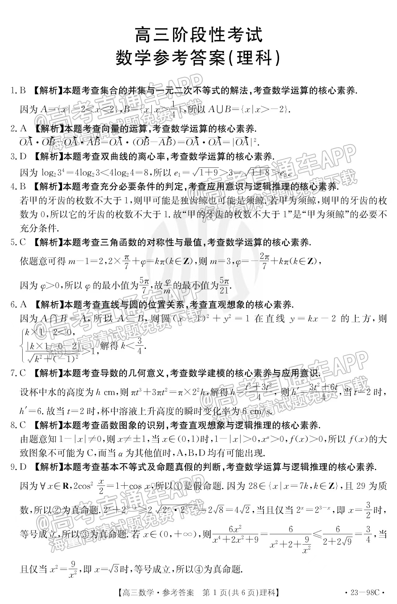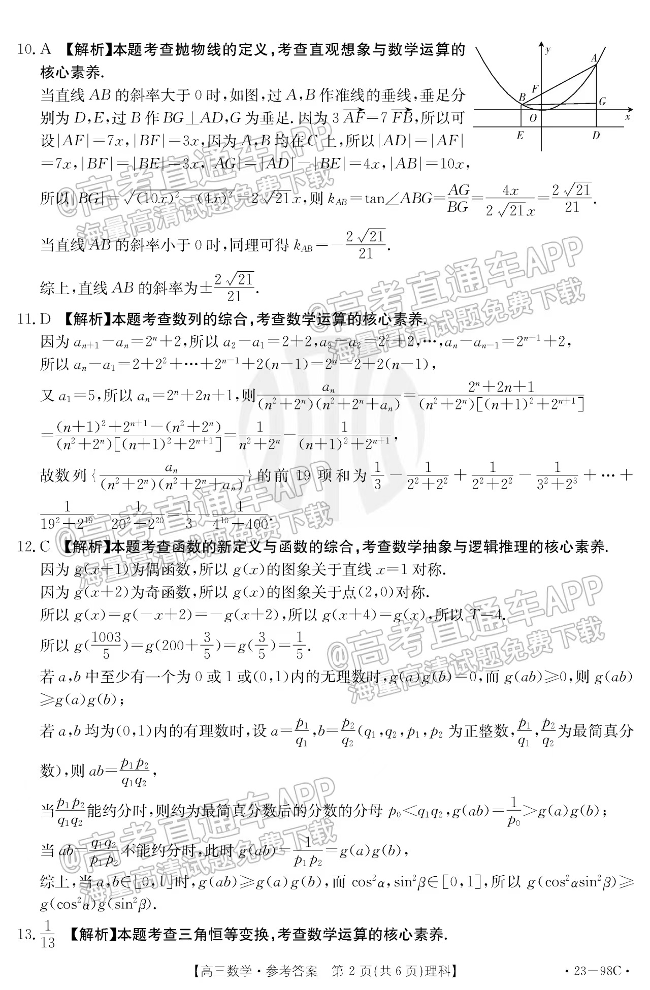 二、2023江西金太阳高三10月大联考23-98c理科数参考答案