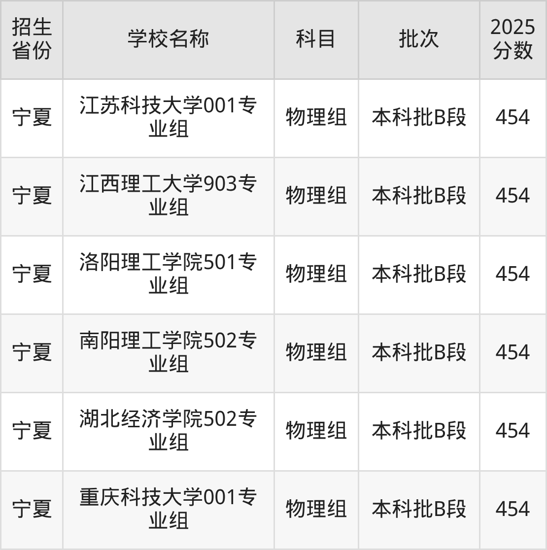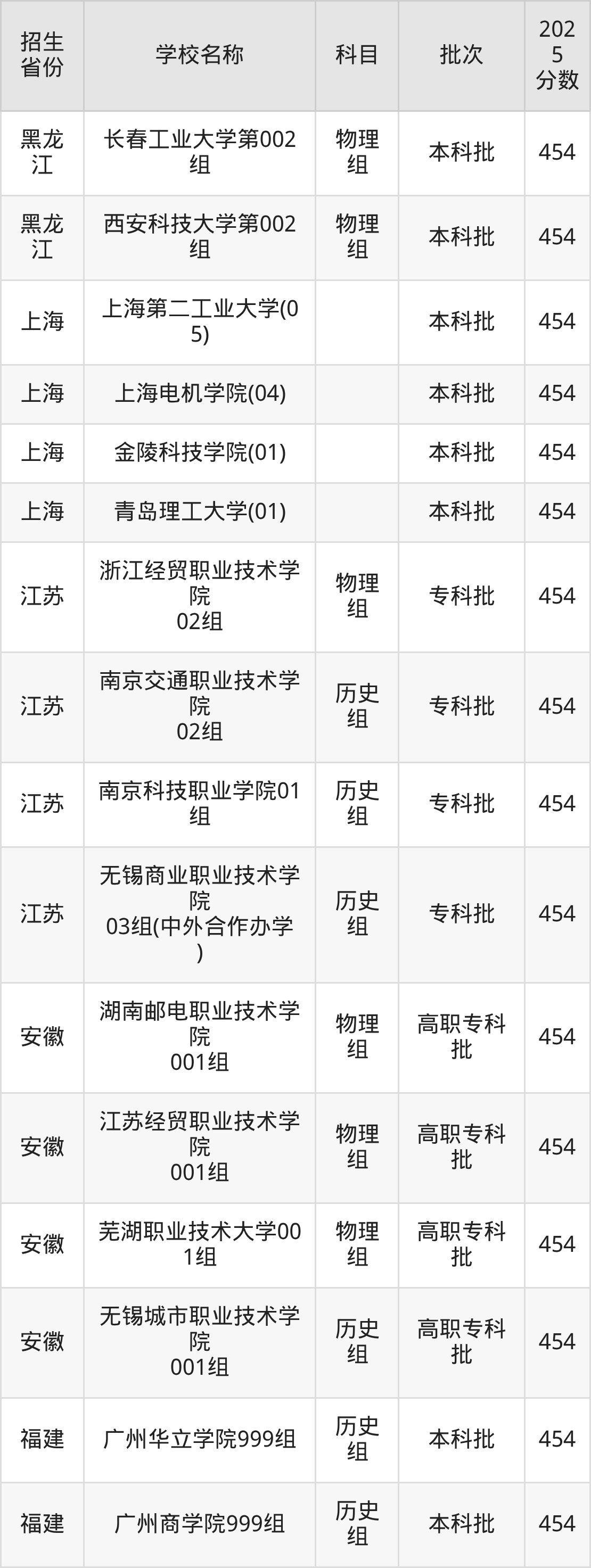 二、各省454分的理科大学名单