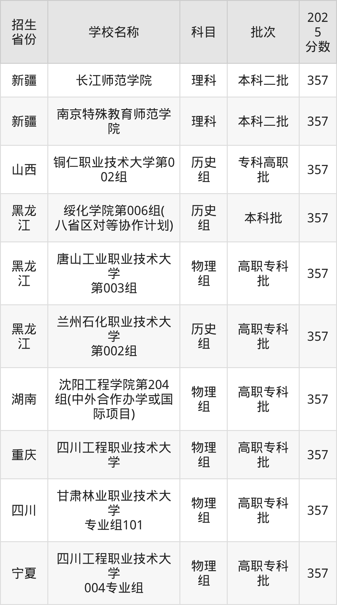 二、各省357分的二本公办大学名单