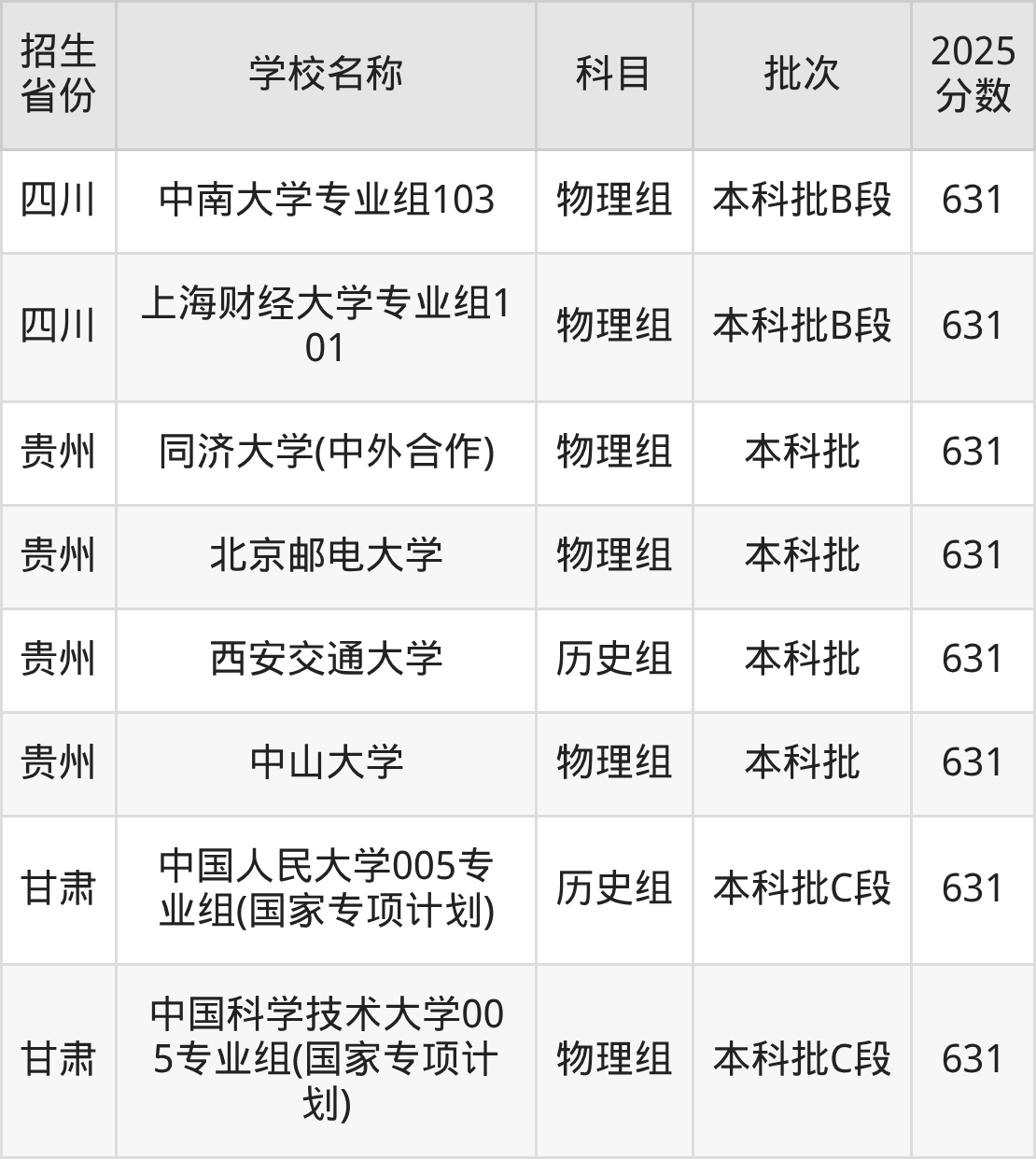 二、各省631分的211大学名单