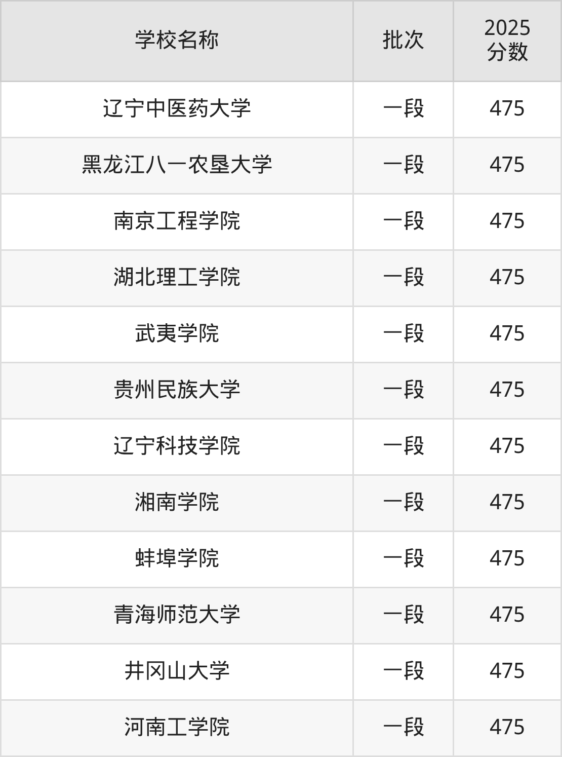 山东高考录取分数线在475分左右的公办大学一共有12所。分别是辽宁中医药大学(475分)、黑龙江八一农垦大学(475分)、南京工程学院(475分)