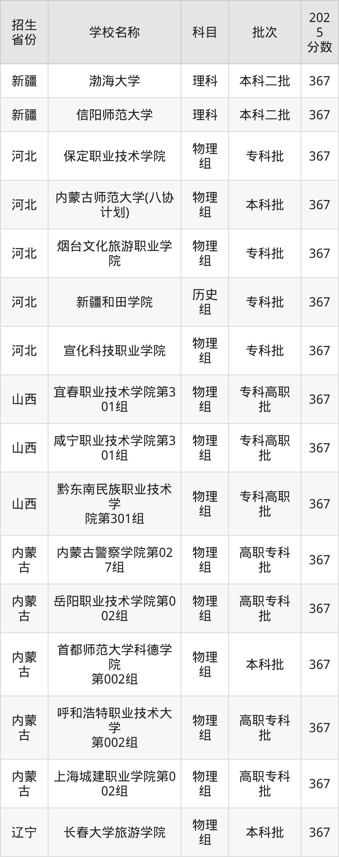 河北省历史组分数线是367分的文科大学有:新疆和田学院。