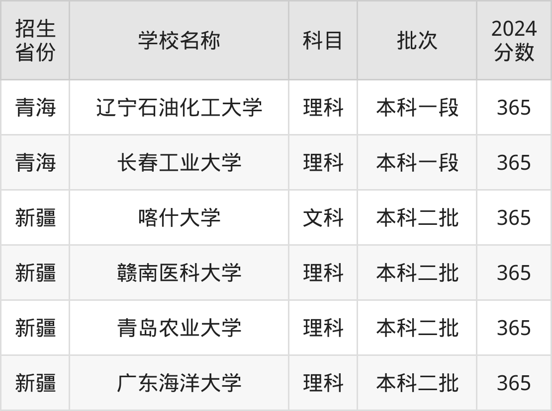 365分可以上的大学有辽宁石油化工大学、长春工业大学、喀什大学、赣南医科大学等一本大学。本文整理了新疆、青海等全国365分左右的一本大学名单,请2025年高考生参考。