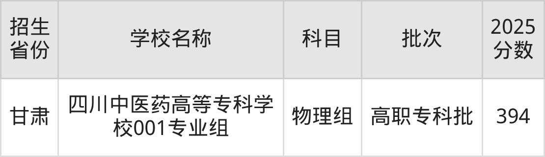 贵州省物理组分数线是394分的公办专科大学有:山东医学高等专科学校、杭州科技职业技术学院、遵义医药高等专科学校、四川中医药高等专科学校。