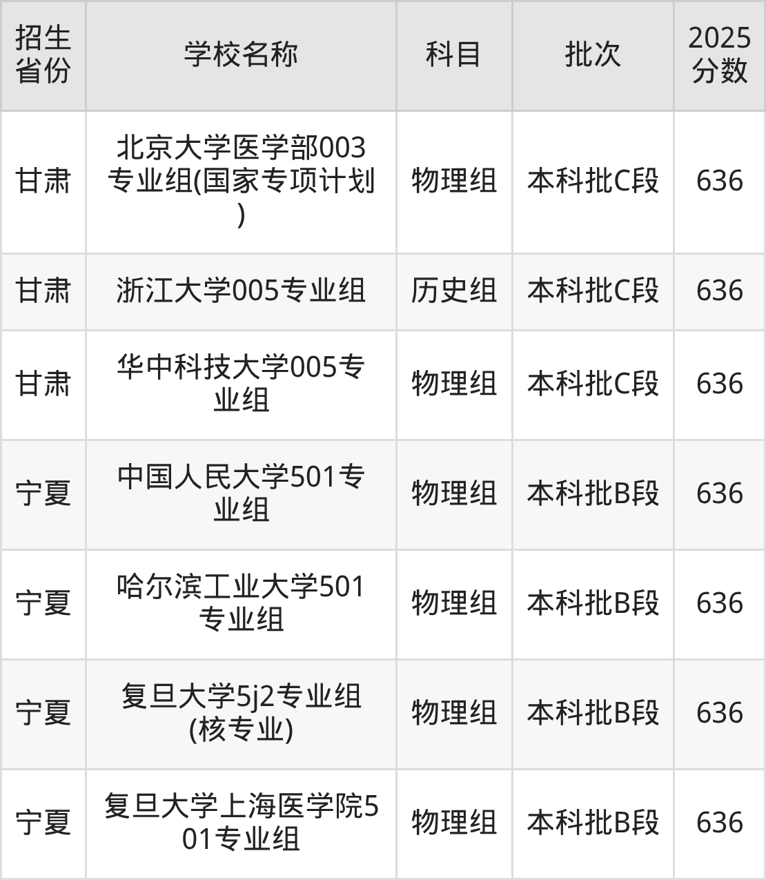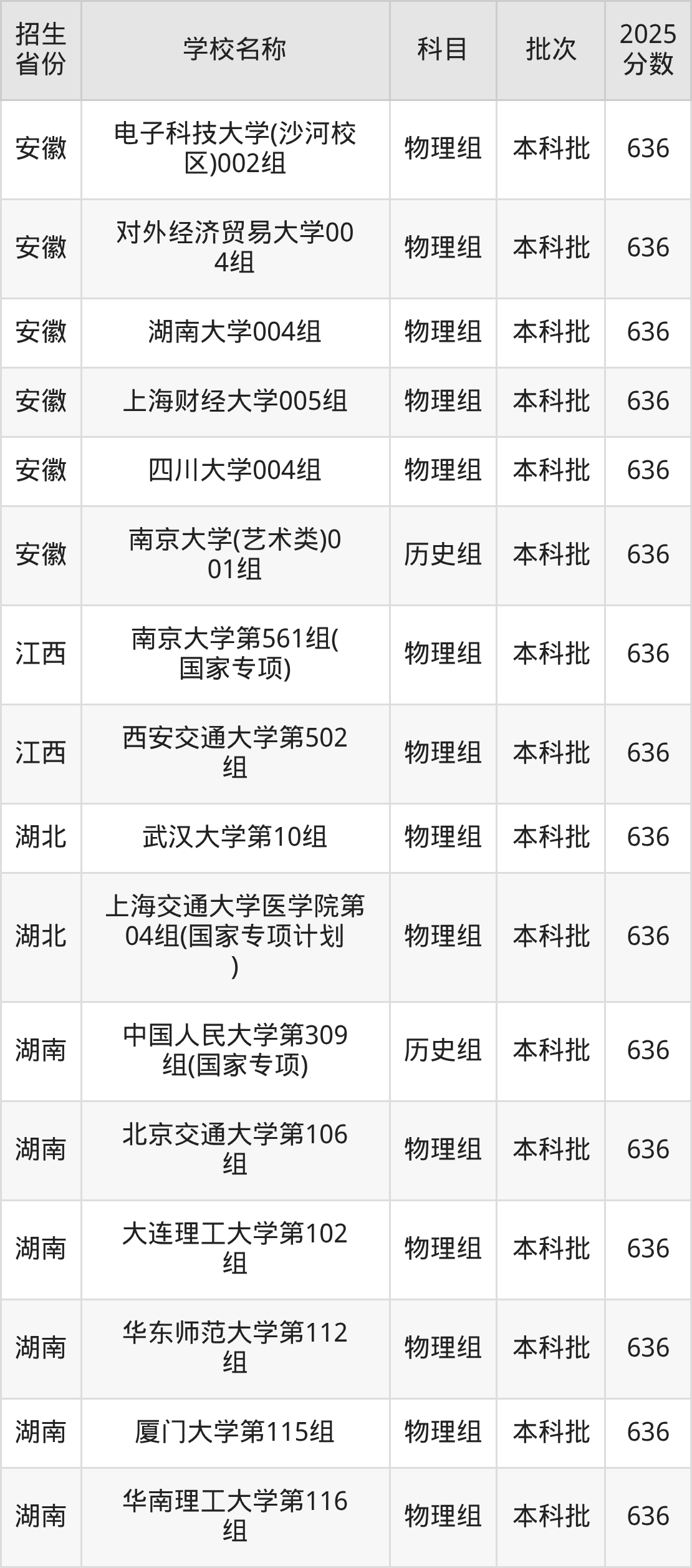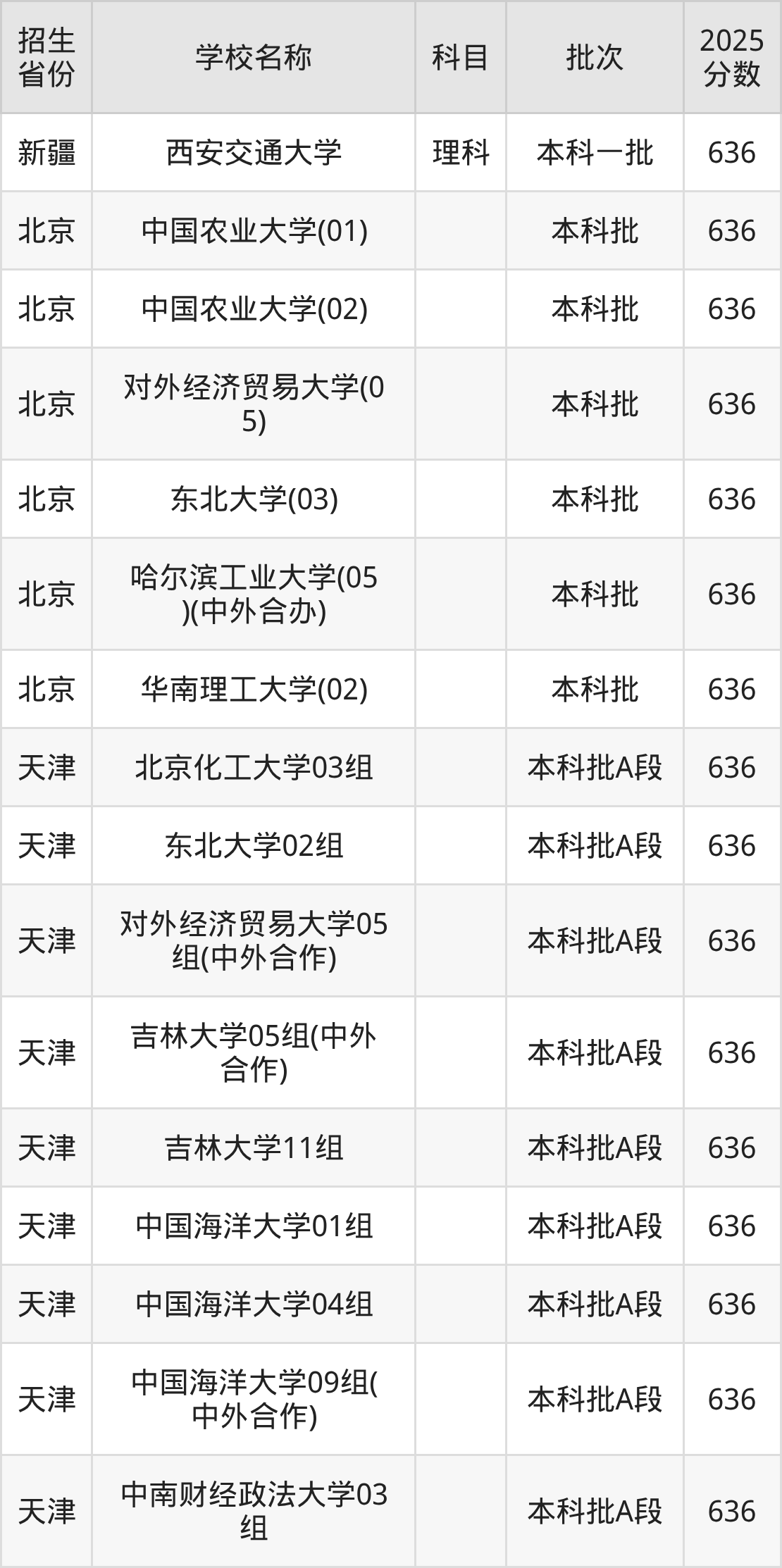 筛选全国各省2025年录取分数线为636分的211大学如下: