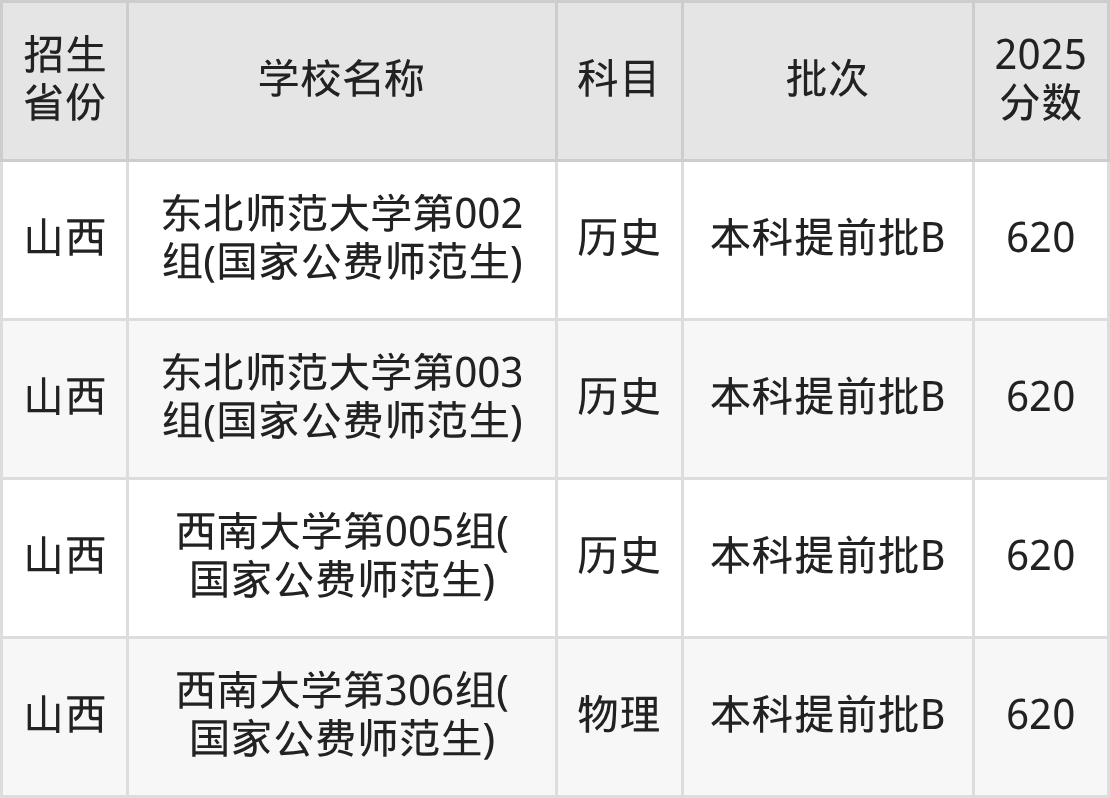 山西省物理组分数线是620分的重点大学有:华北电力大学、哈尔滨工程大学、西南大学。