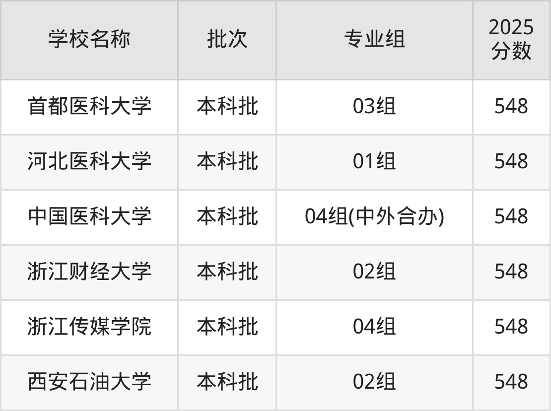 北京高考录取分数线在548分左右的公办大学一共有6所。分别是首都医科大学(548分)、河北医科大学(548分)、中国医科大学(548分)