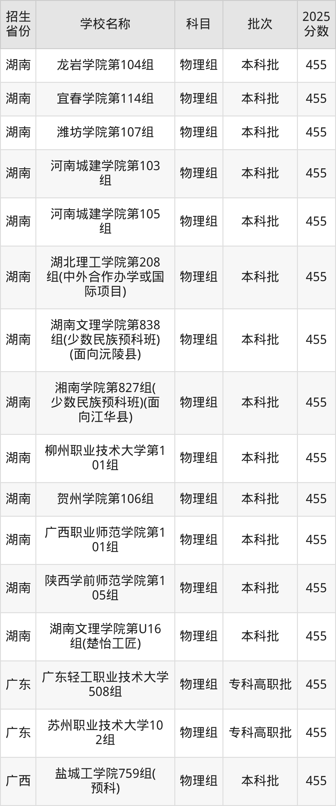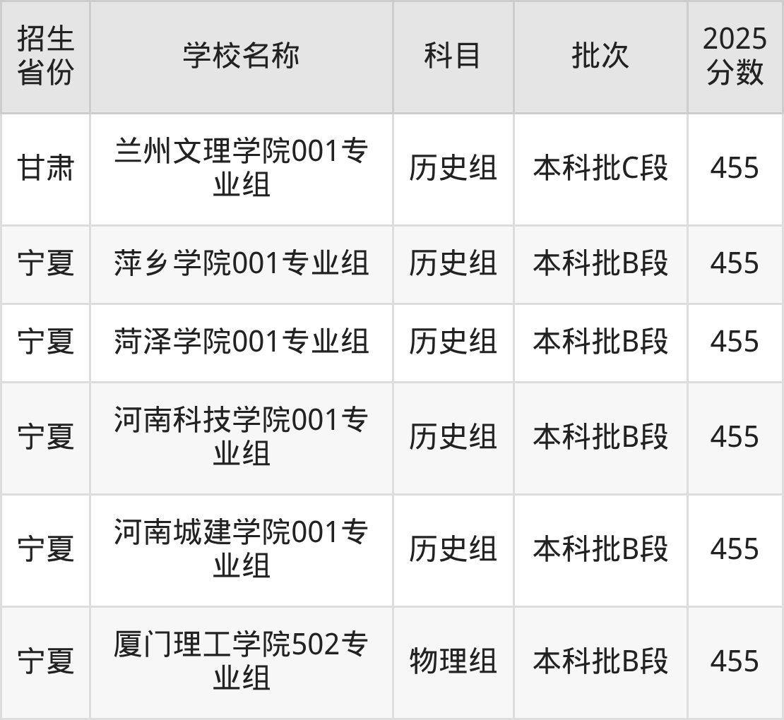 筛选全国各省2025年录取分数线为455分的二本公办大学如下: