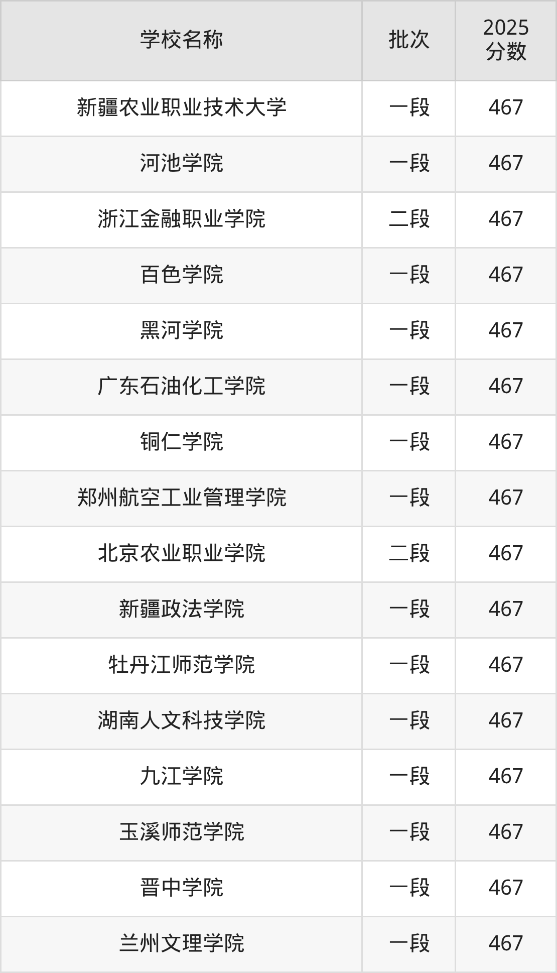 山东高考录取分数线在467分左右的公办大学一共有30所。分别是新疆农业职业技术大学(467分)、河池学院(467分)、浙江金融职业学院(467分)