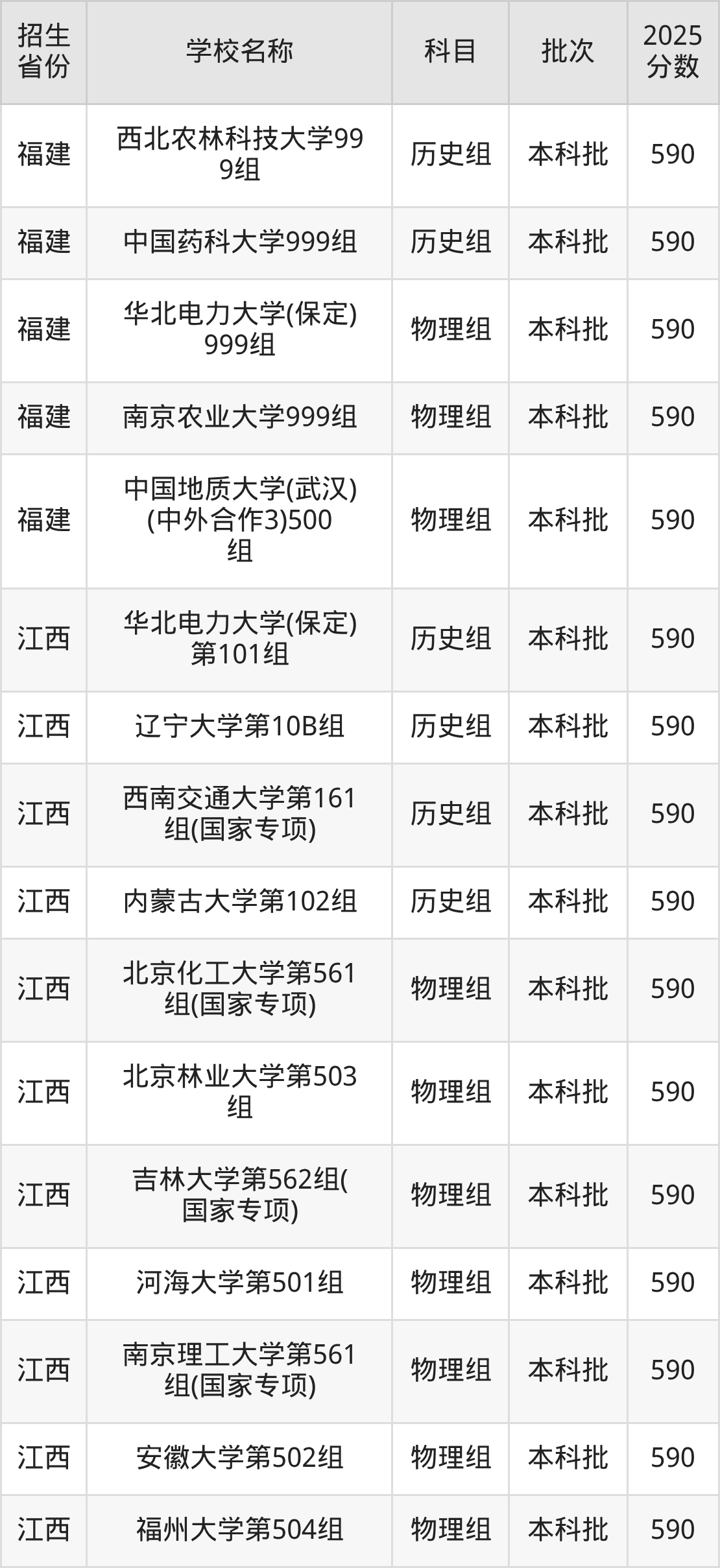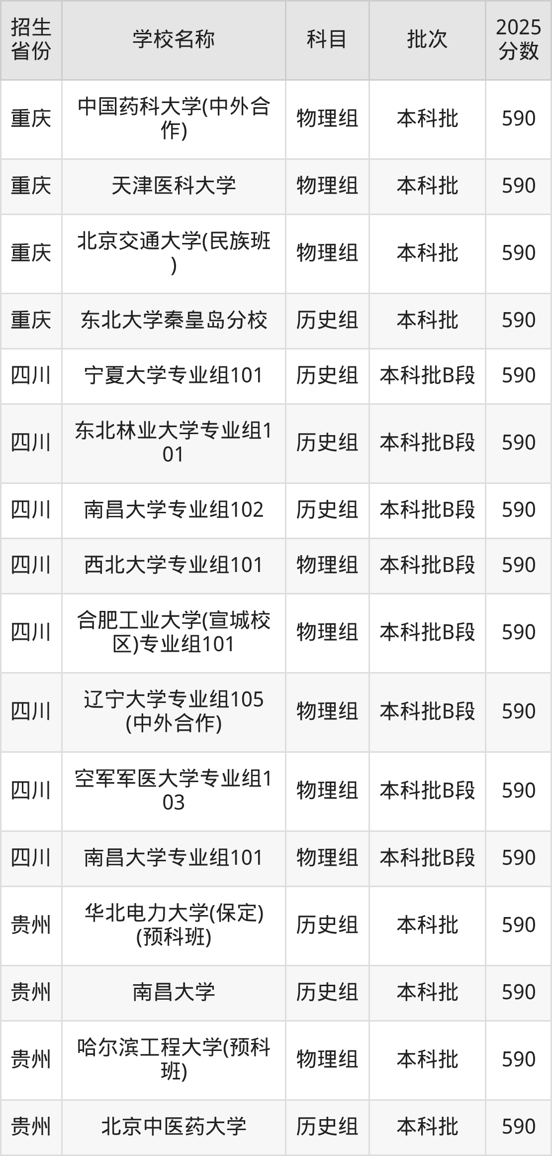 二、各省590分的211大学名单