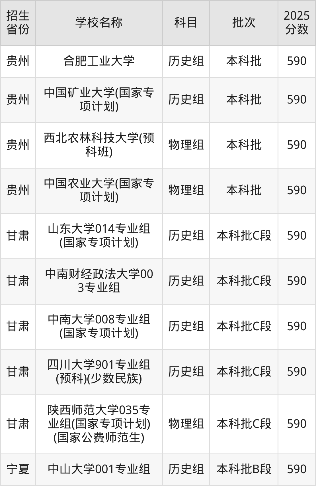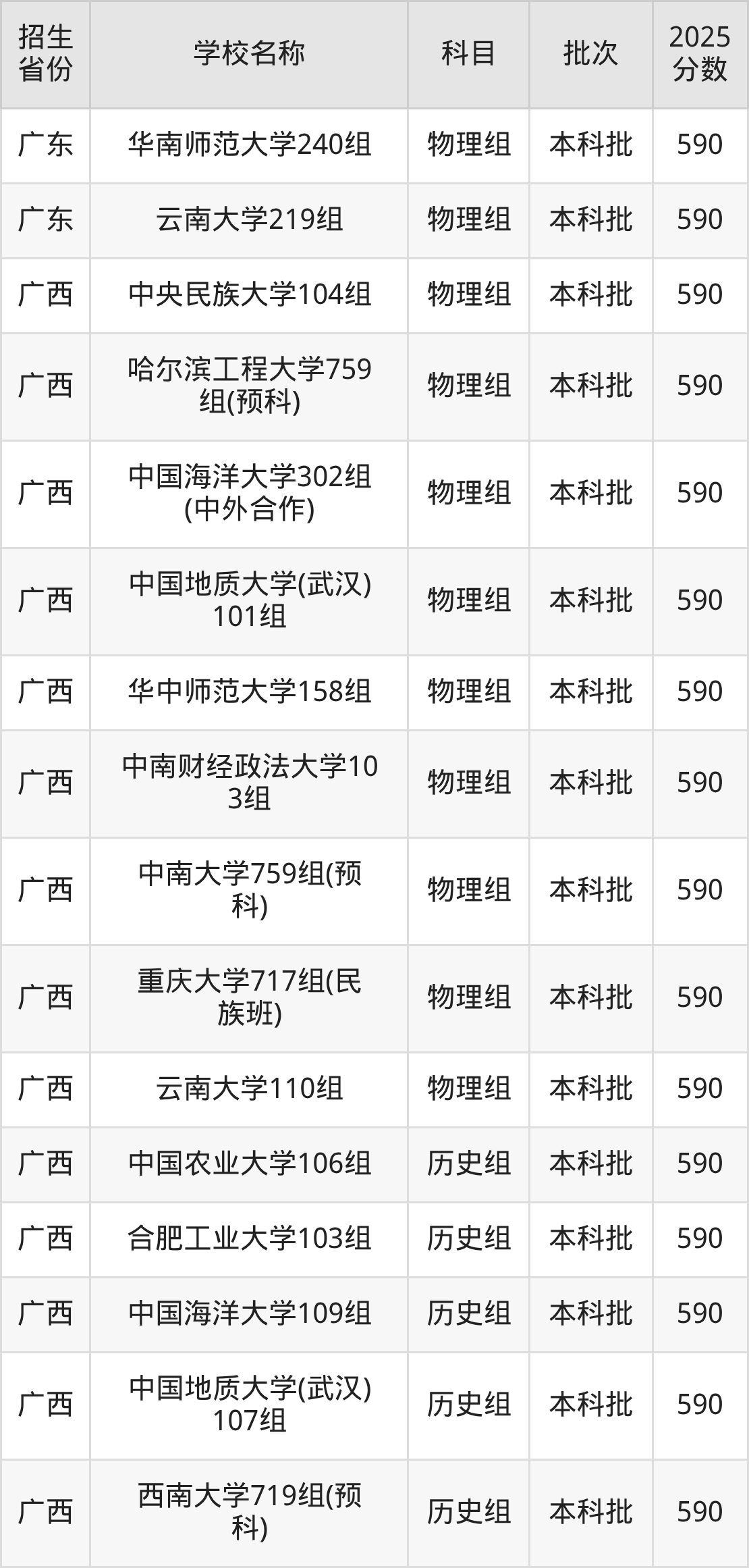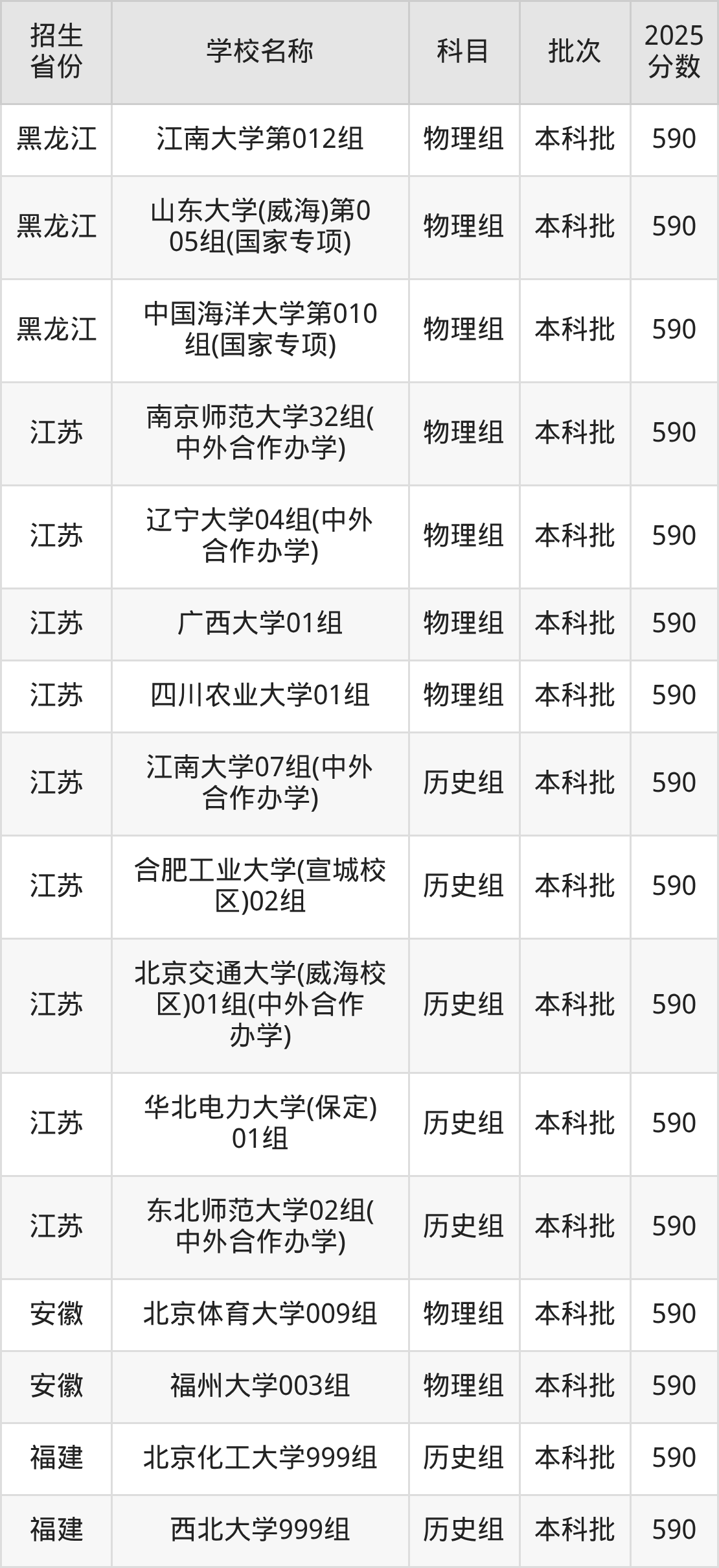 筛选全国各省2025年录取分数线为590分的211大学如下: