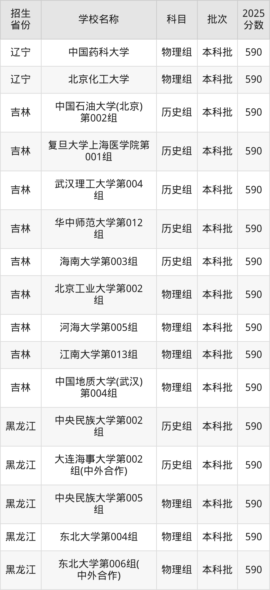吉林省历史组分数线是590分的211大学有:中国石油大学(北京)、复旦大学上海医学院、武汉理工大学、华中师范大学、海南大学。