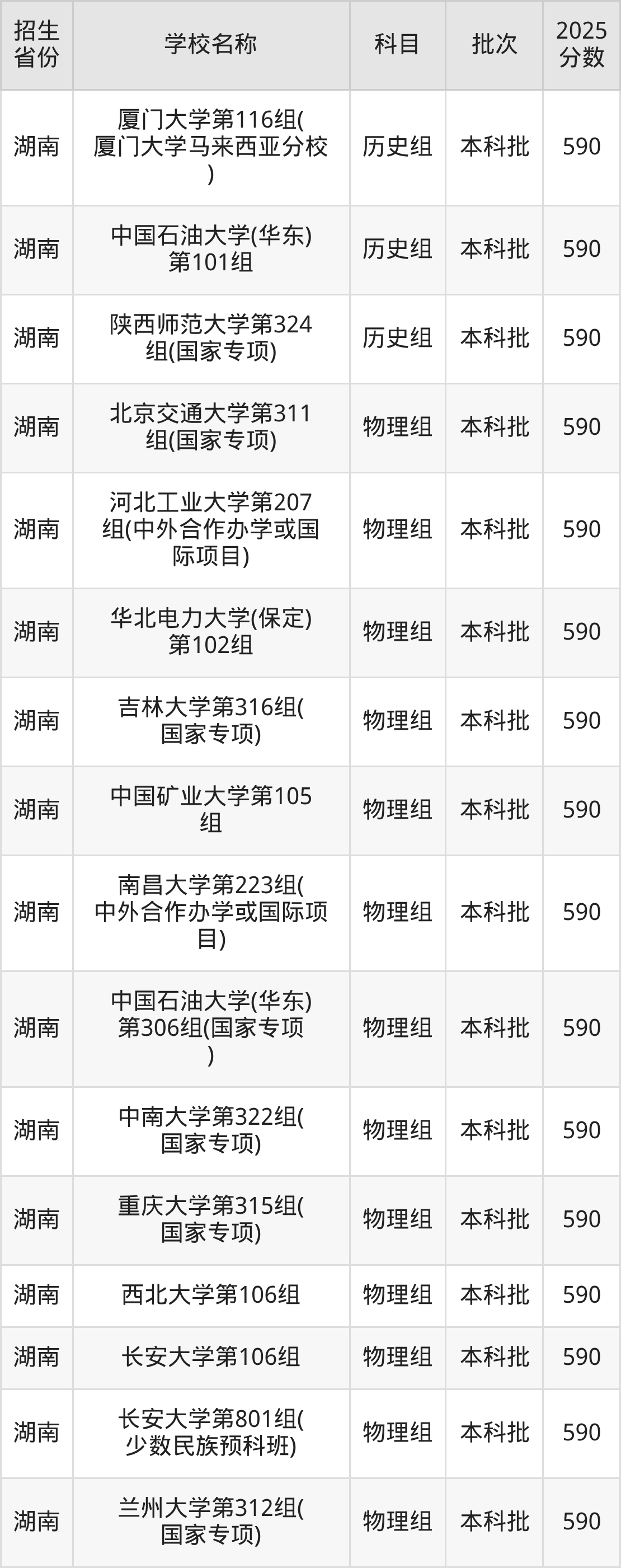 湖南省物理组分数线是590分的211大学有:北京交通大学、河北工业大学、华北电力大学(保定)、吉林大学、中国矿业大学、南昌大学、中国石油大学(华东)、中南大学、重庆大学、西北大学。