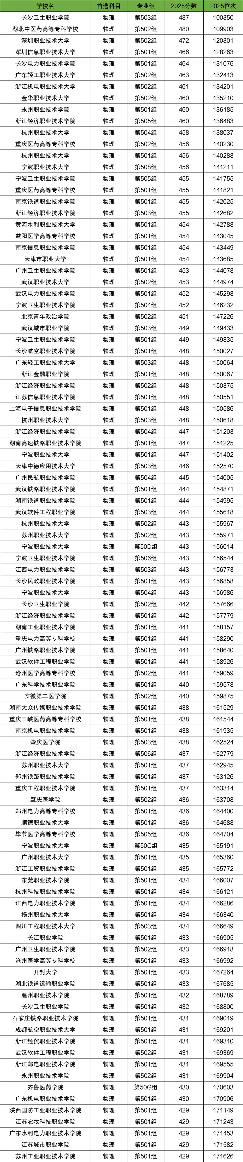 2025年江西各大学物理类专科批次分数最高的100个院校专业组如下:
