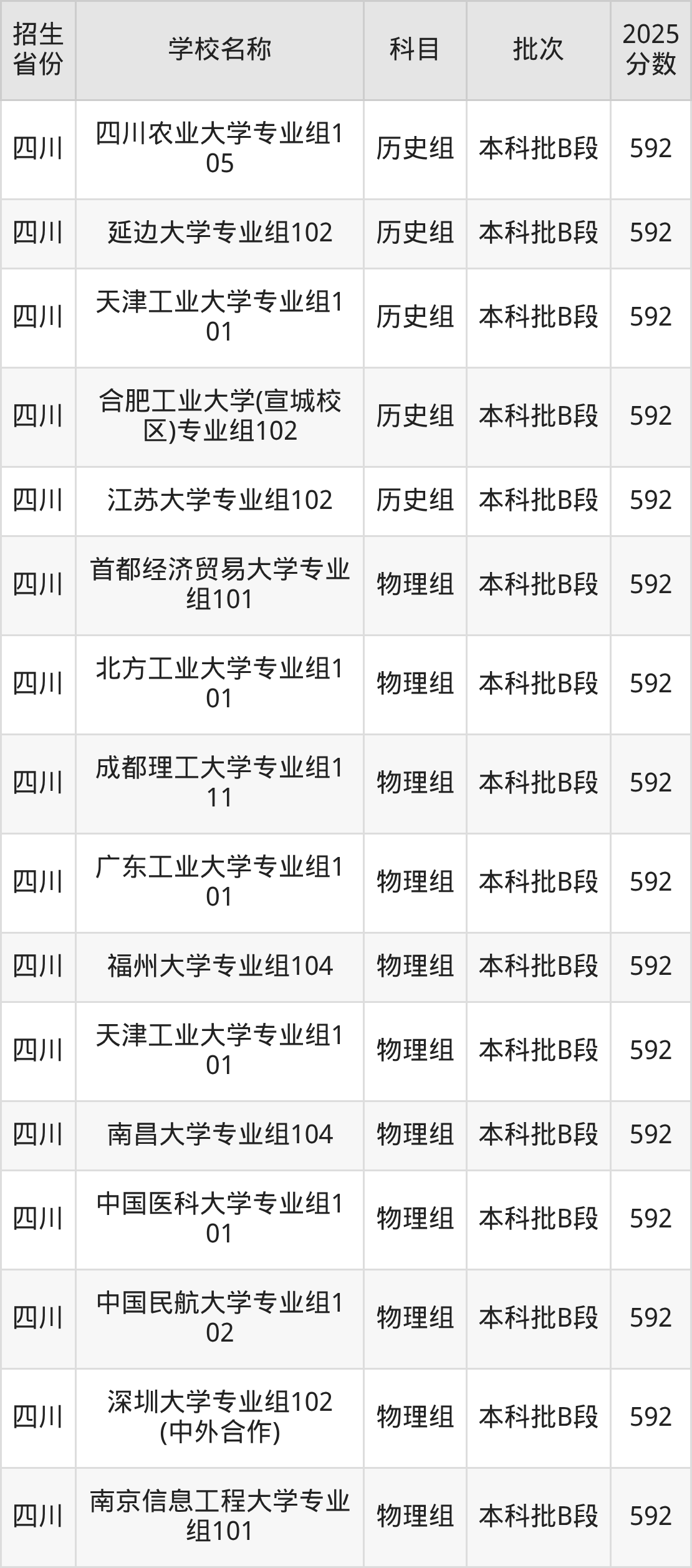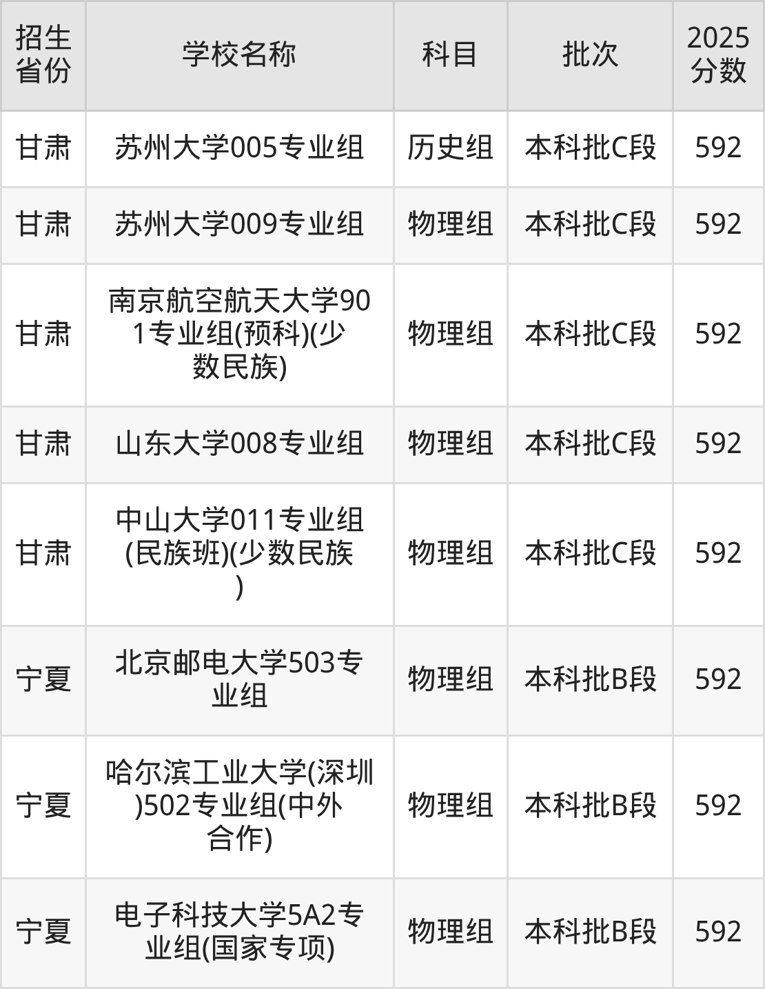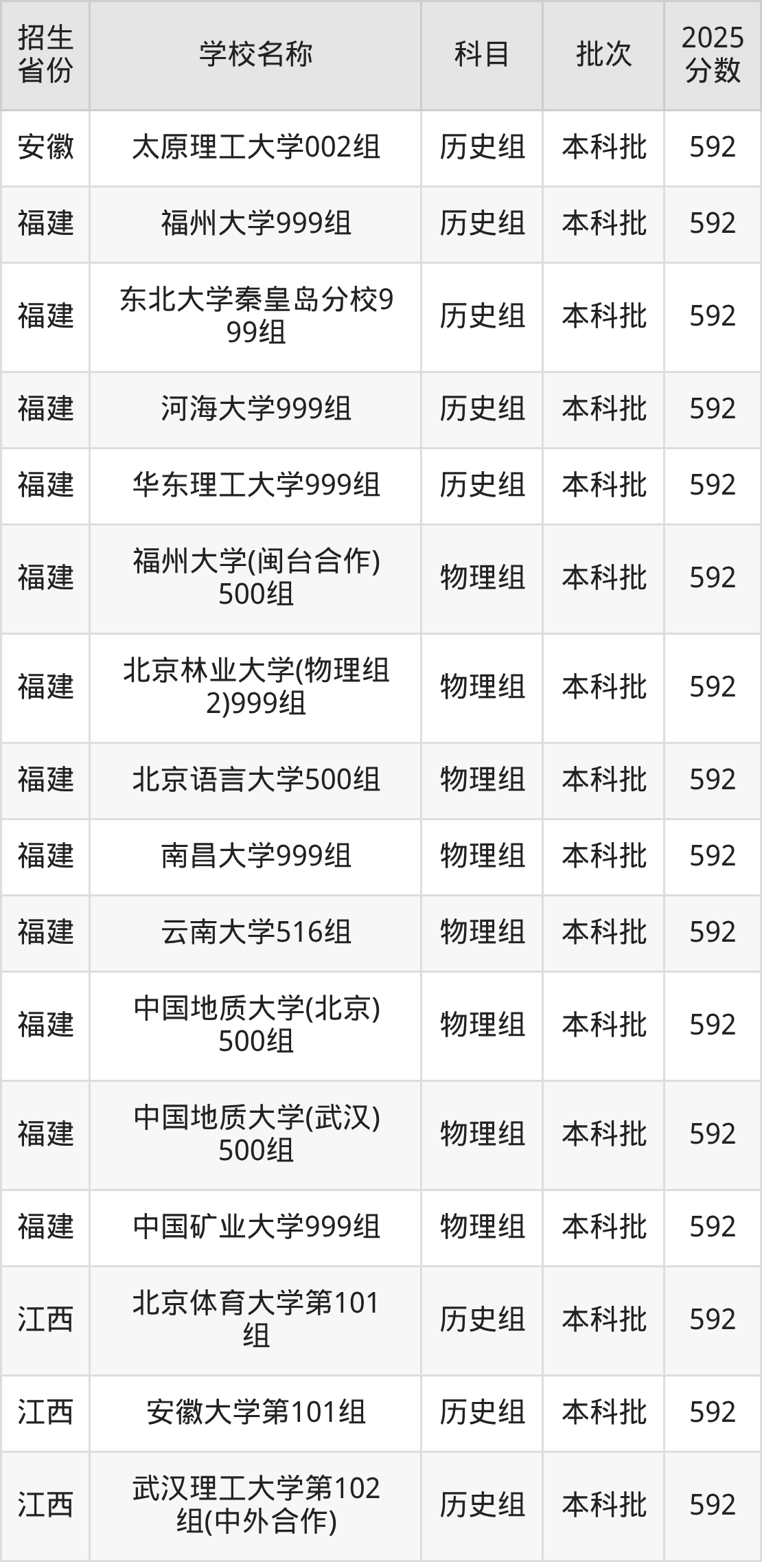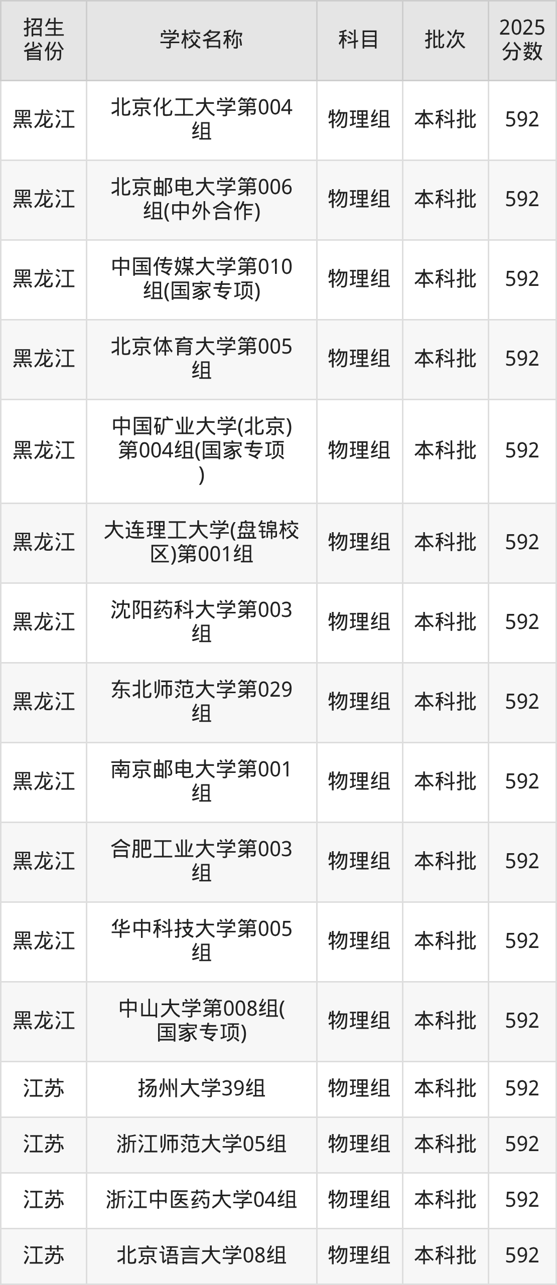 筛选全国各省2025年录取分数线为592分的重点大学如下: