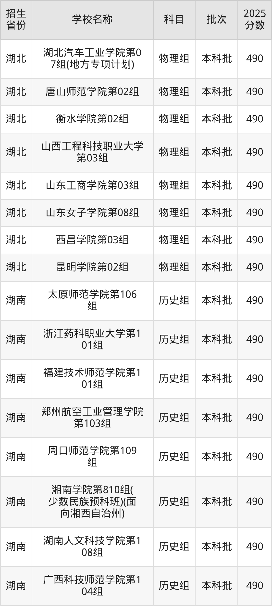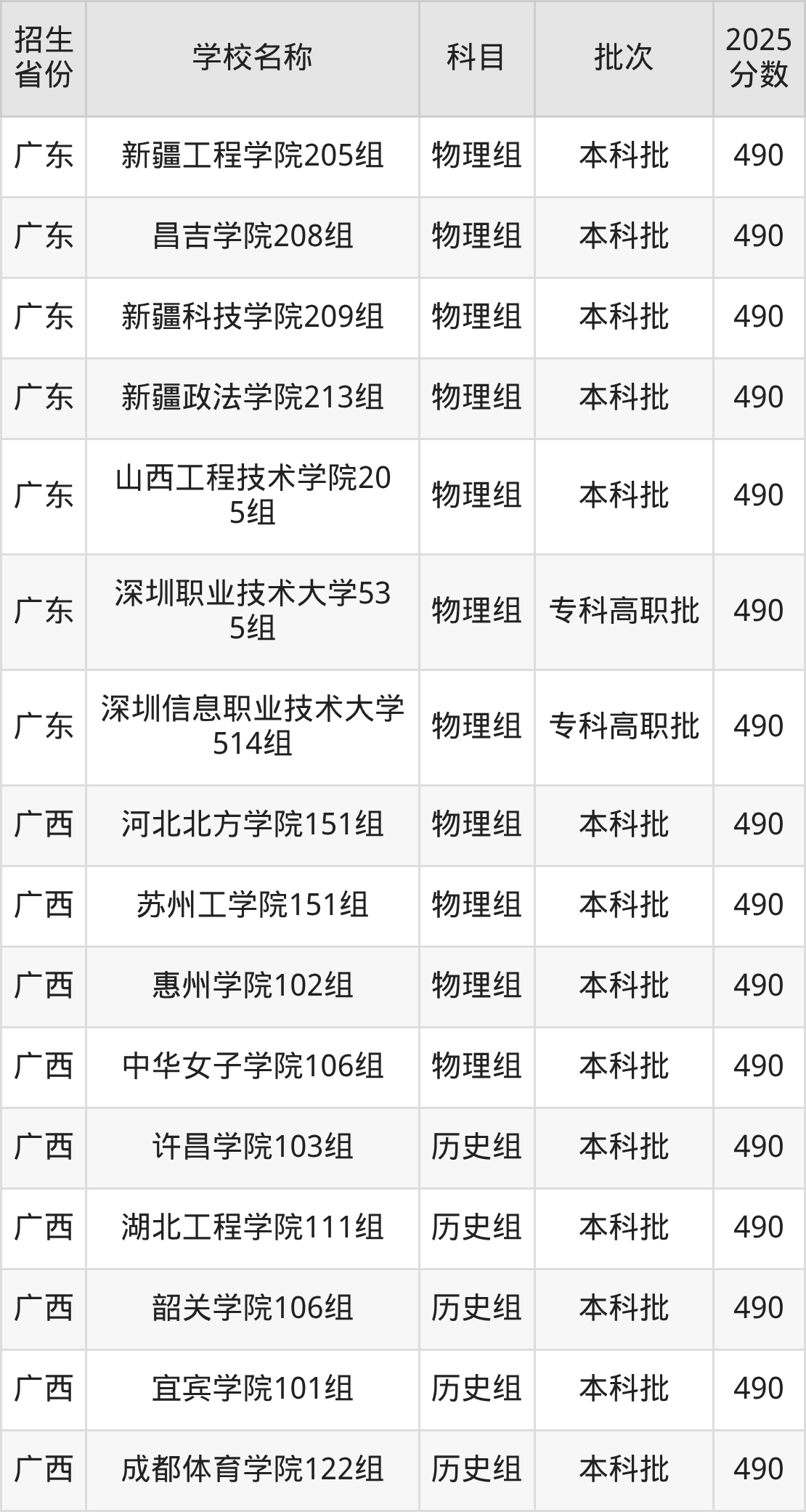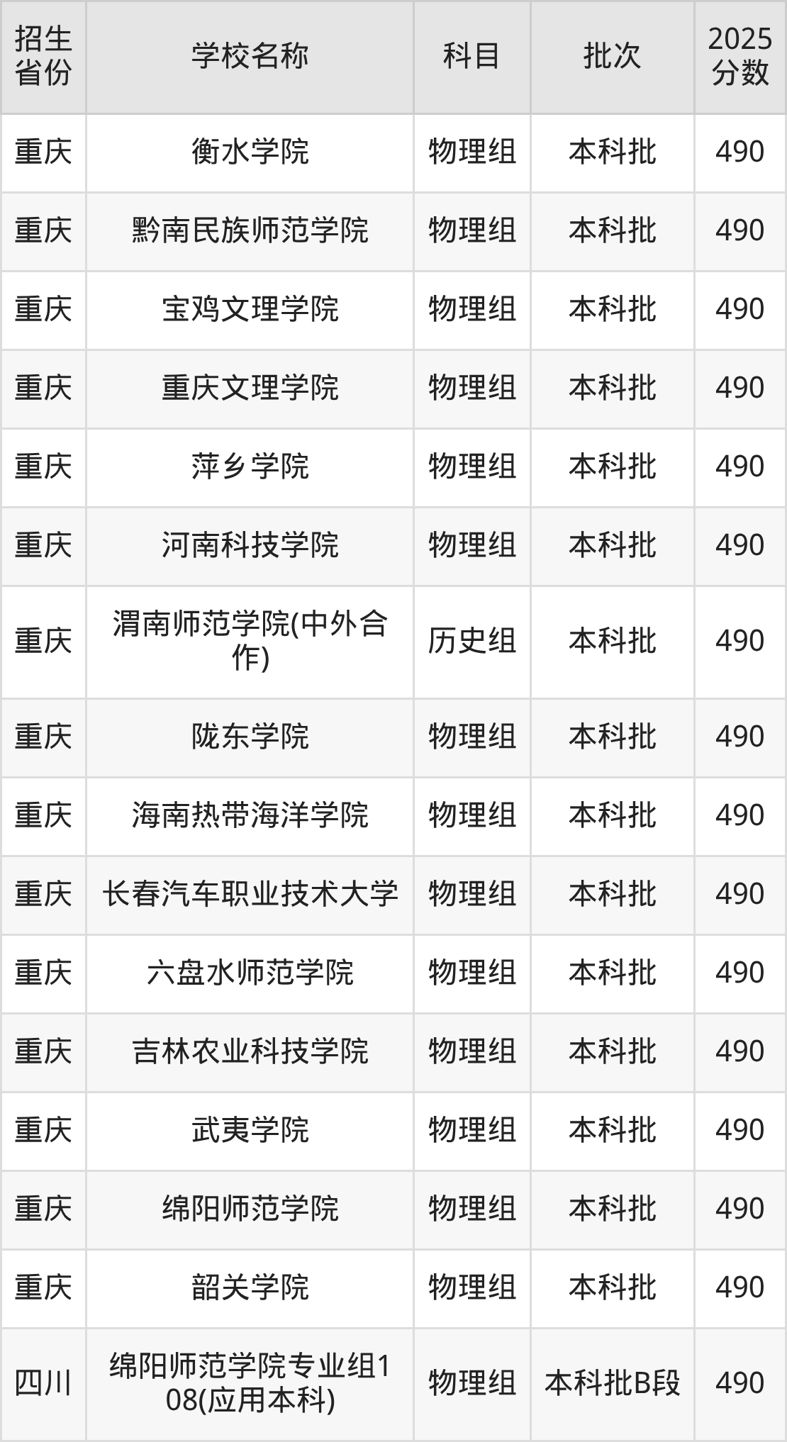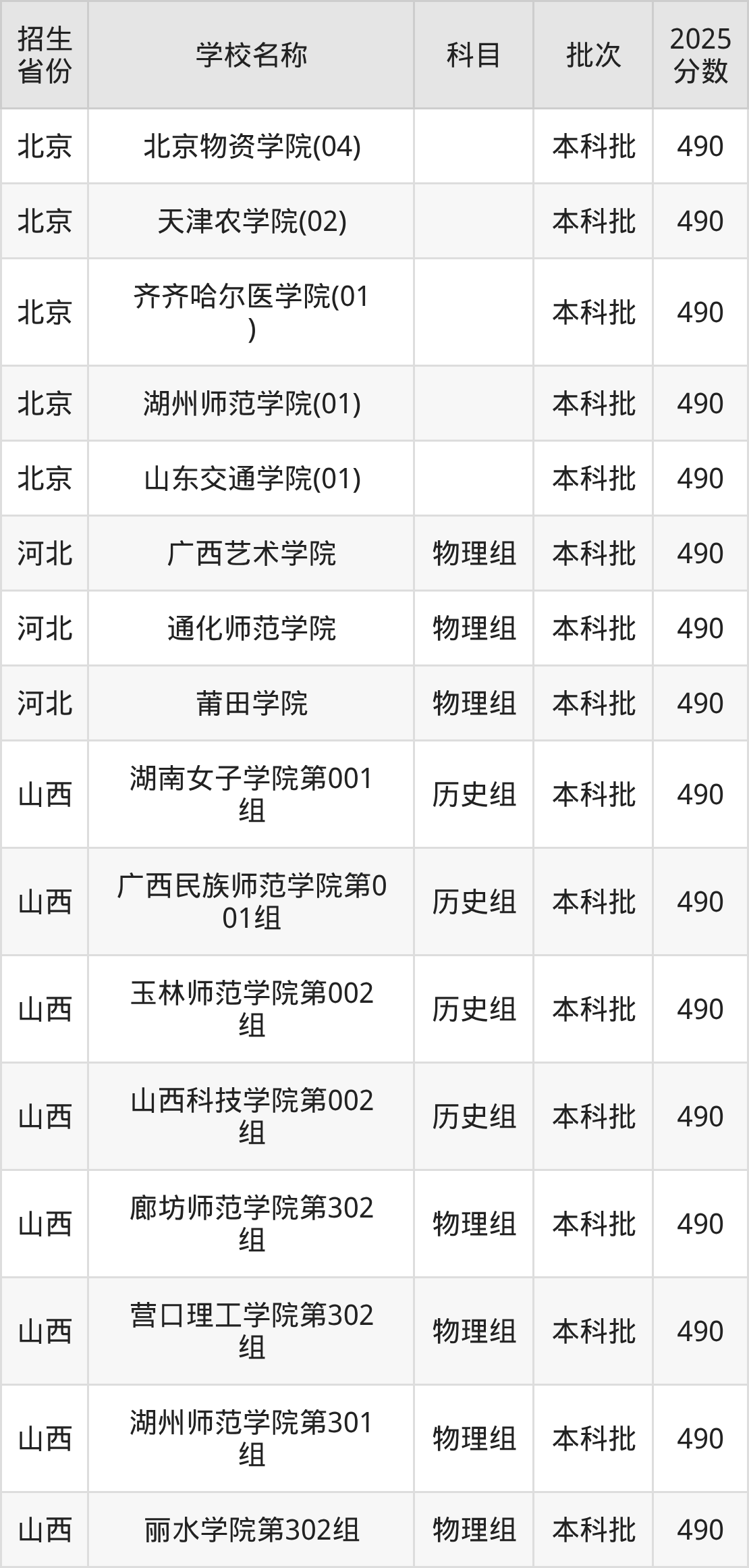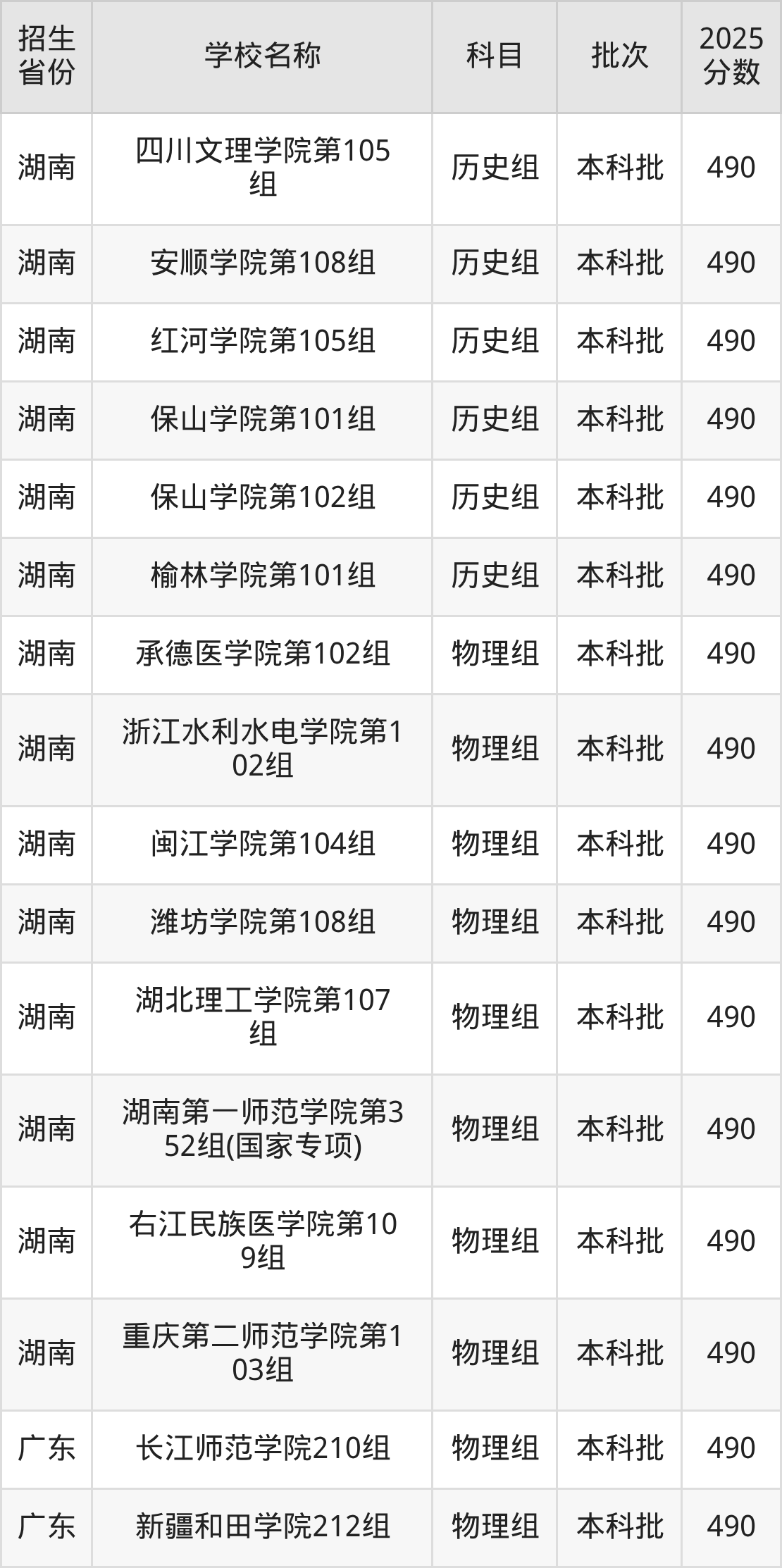 筛选全国各省2025年录取分数线为490分的二本公办大学如下: