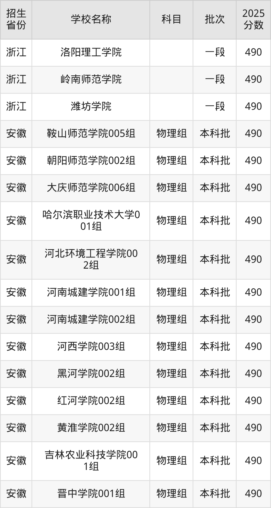 490分可以上的大学有北京物资学院、天津农学院、齐齐哈尔医学院、湖州师范学院等二本公办大学。本文整理了浙江、安徽等全国490分左右的二本公办大学名单,请2026年高考生参考。