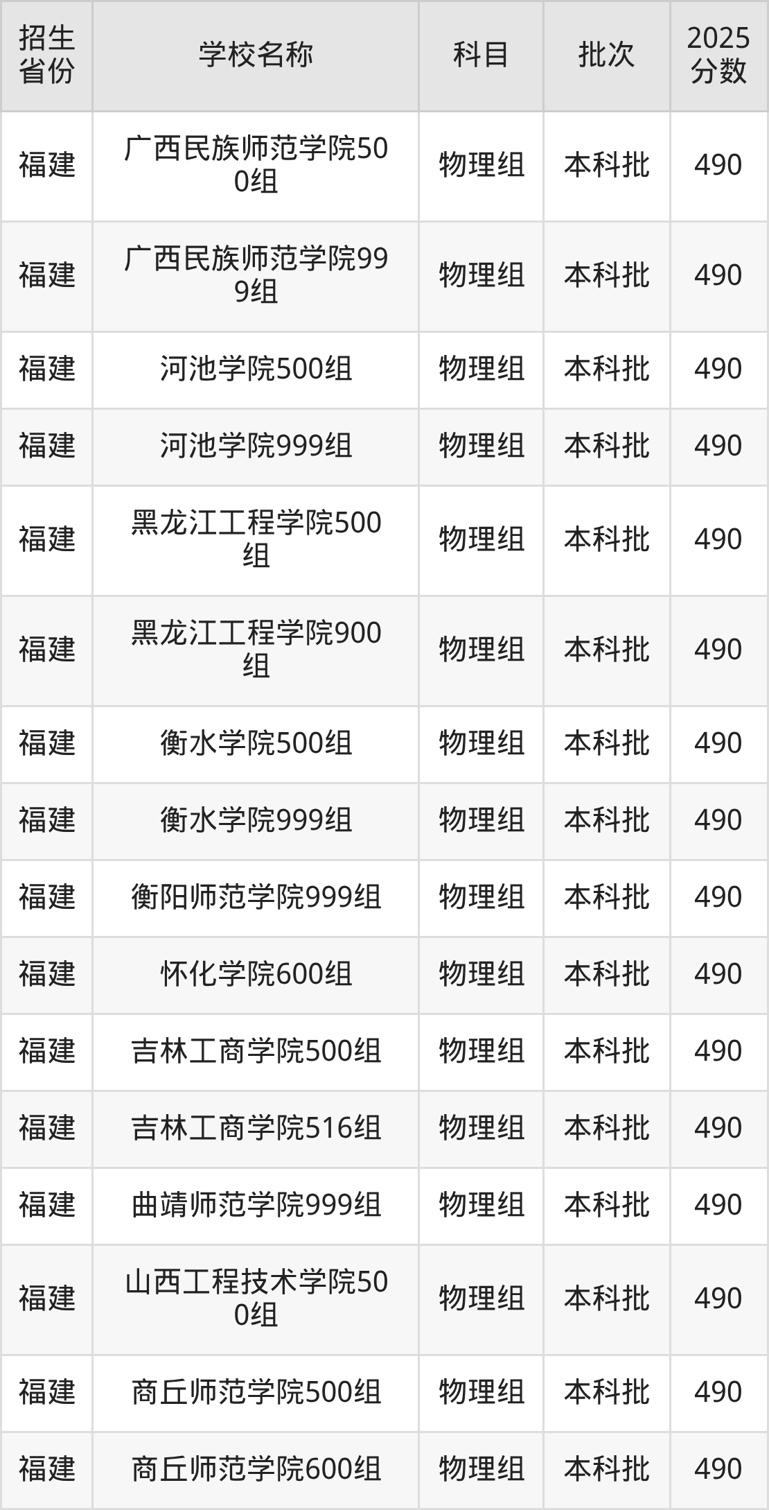福建省物理组分数线是490分的二本公办大学有:三明学院(国际课程教育项目)、长治学院、广西民族师范学院、河池学院、黑龙江工程学院、衡水学院、衡阳师范学院、怀化学院、吉林工商学院、曲靖师范学院。