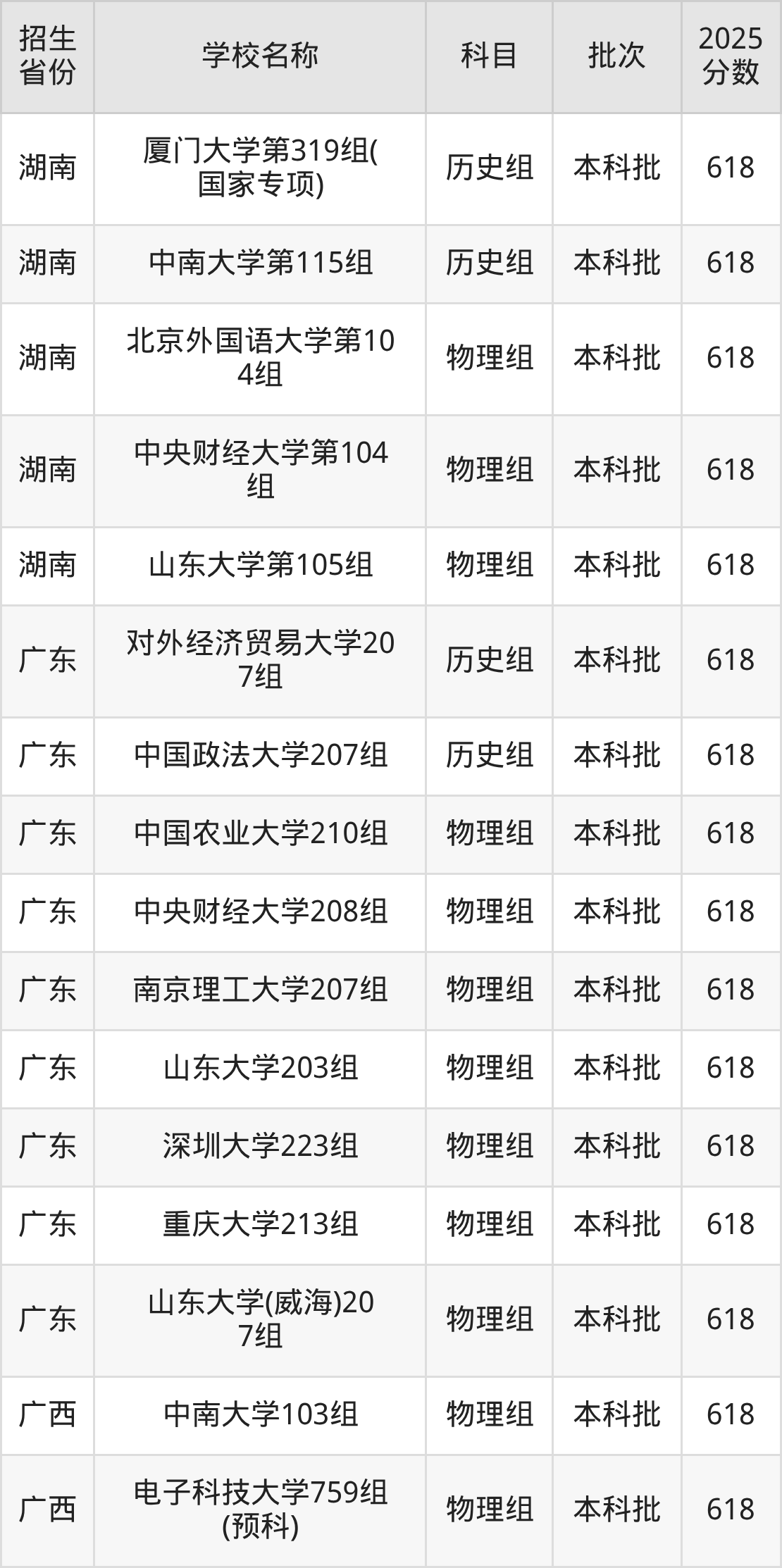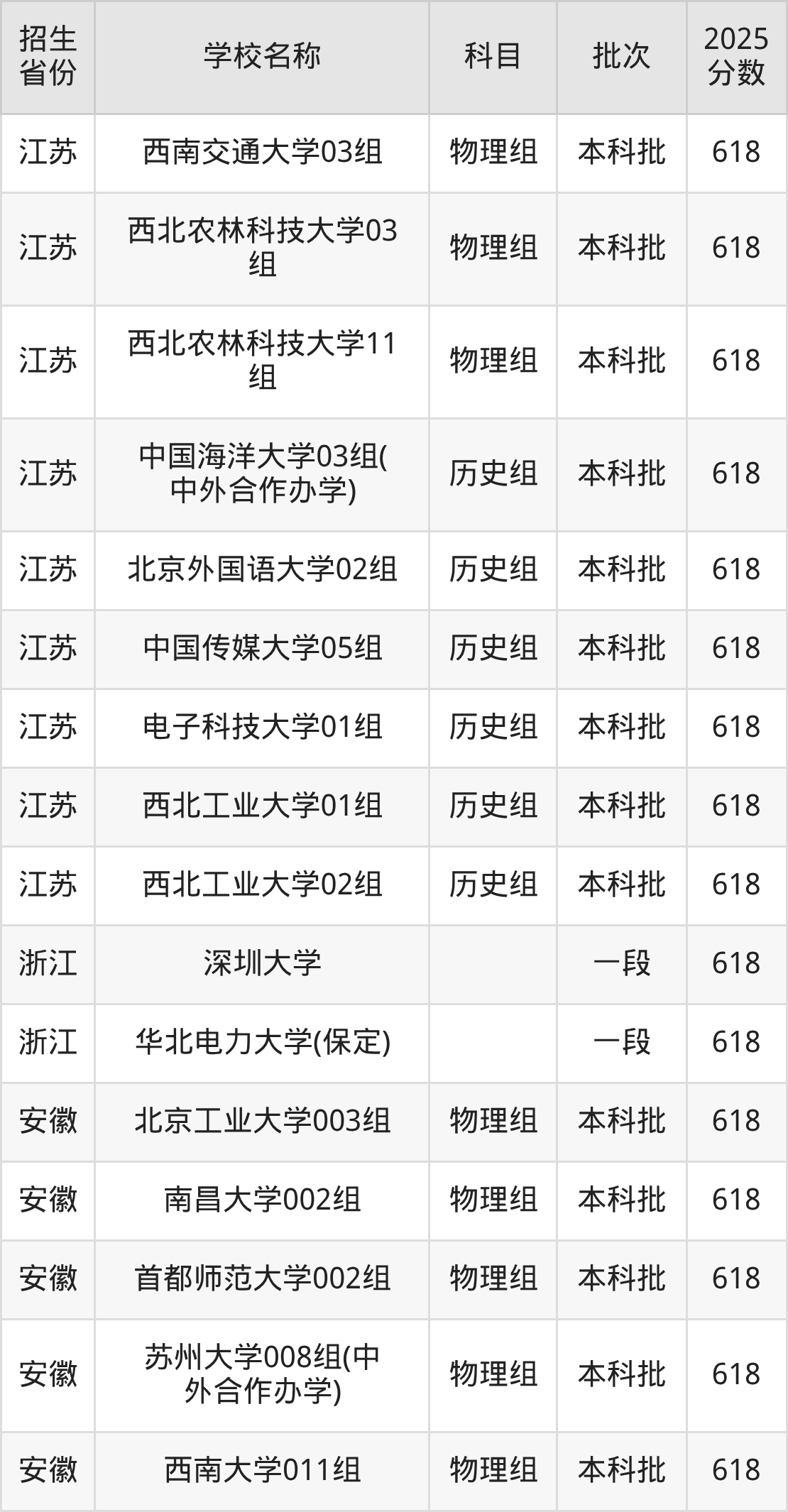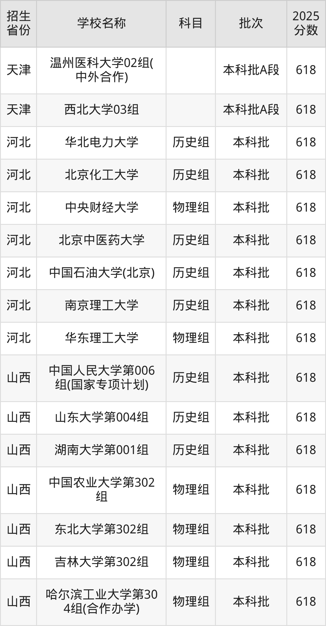 筛选全国各省2025年录取分数线为618分的重点大学如下: