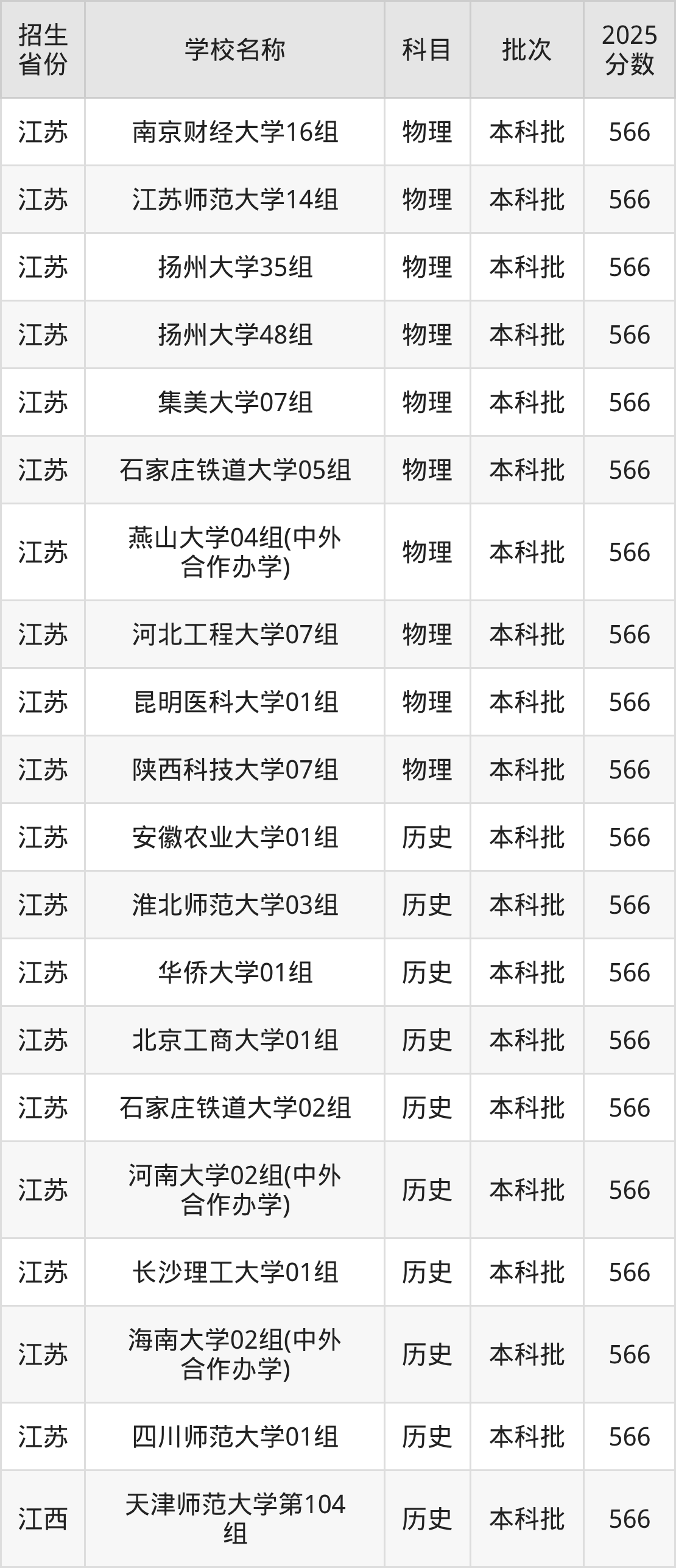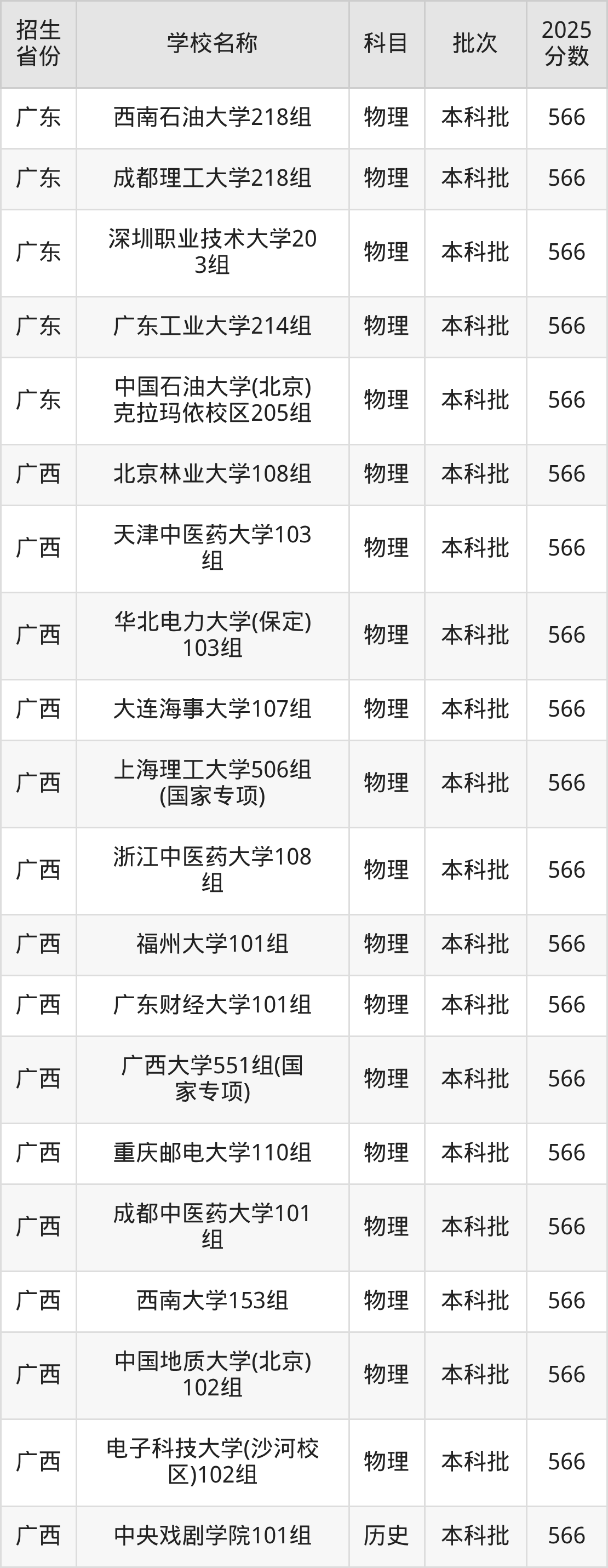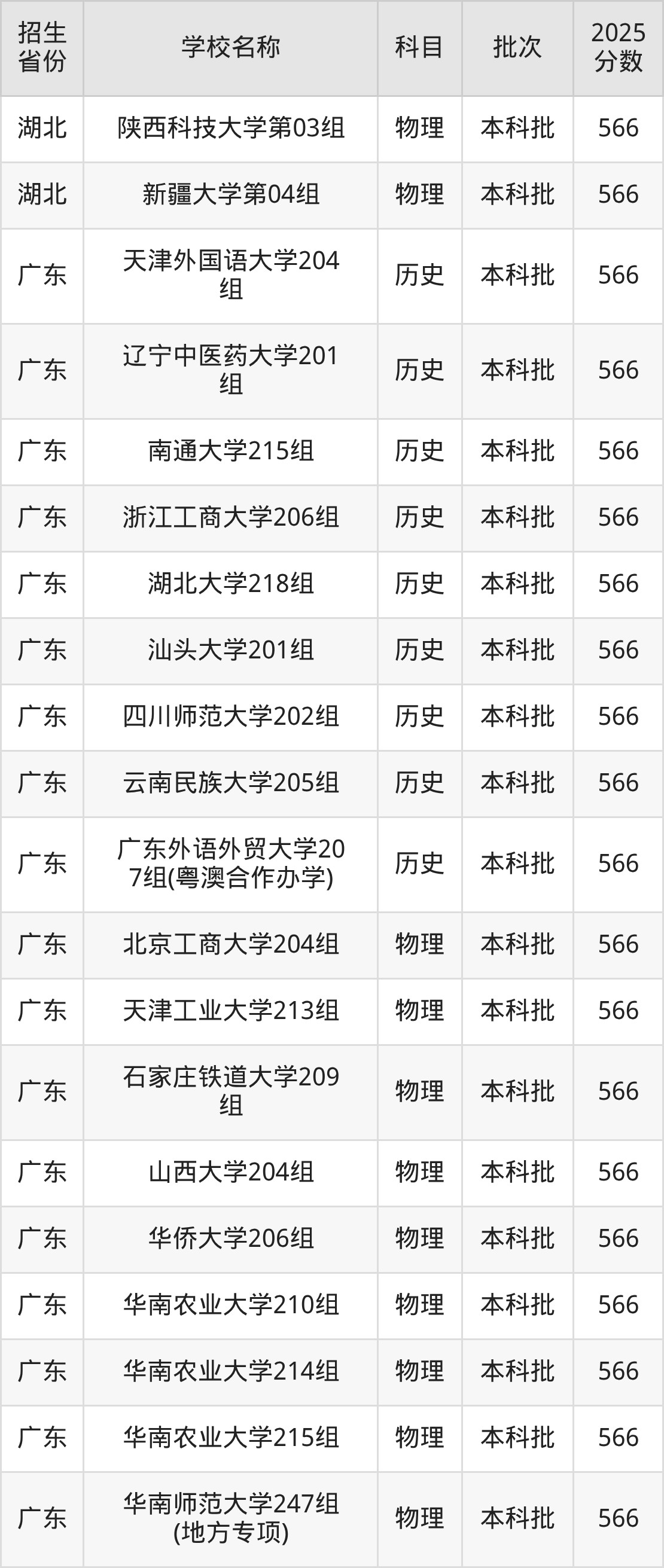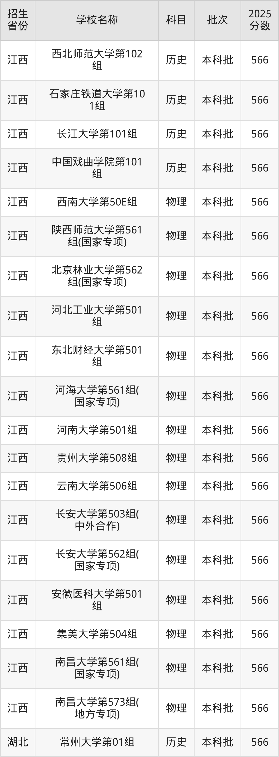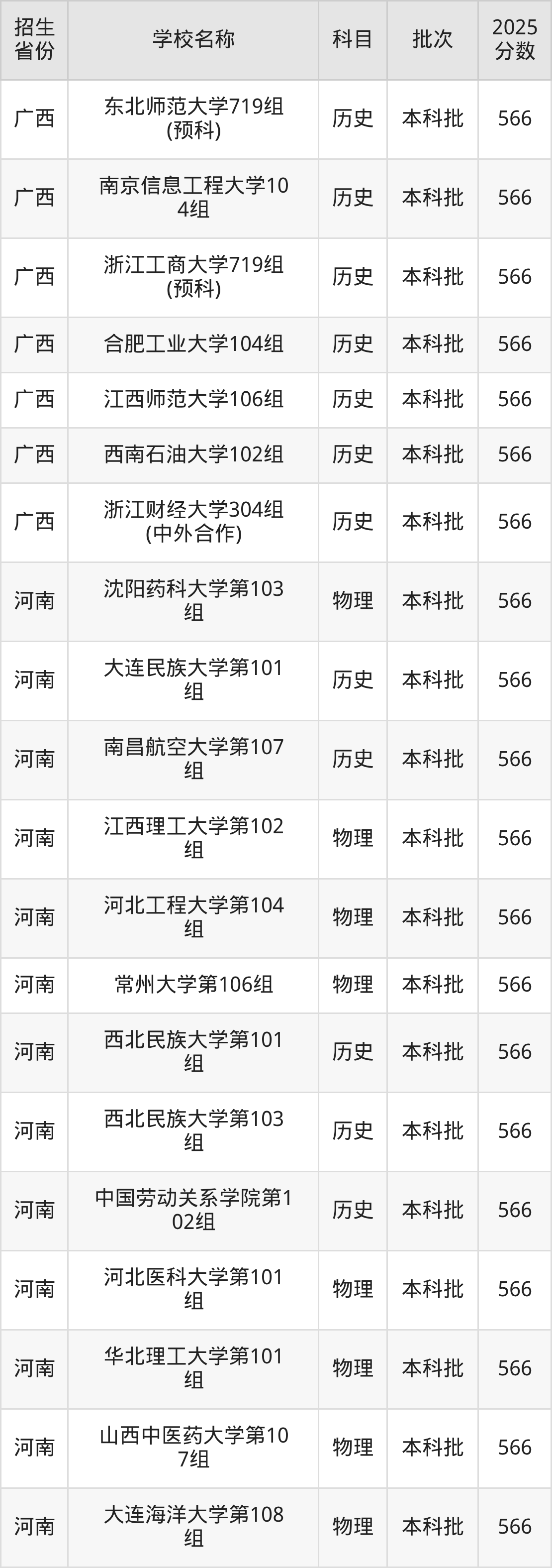筛选全国各省2025年录取分数线为566分的重点大学如下: