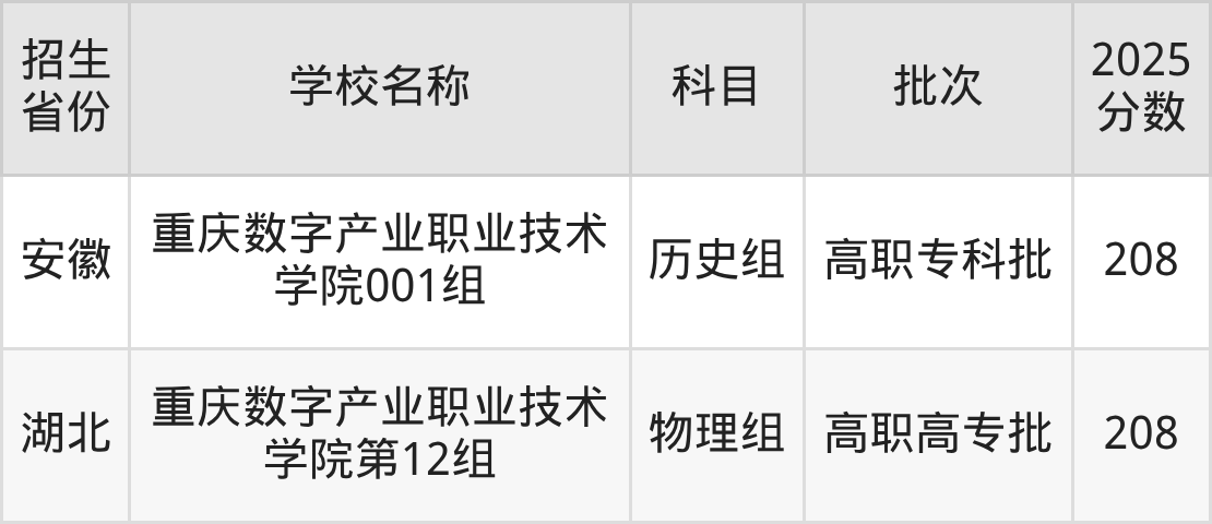 安徽省历史组分数线是208分的民办专科学校有:贵州城市职业学院、明达职业技术学院、广州华商职业学院、江西科技职业学院、岳阳现代服务职业学院、重庆数字产业职业技术学院。