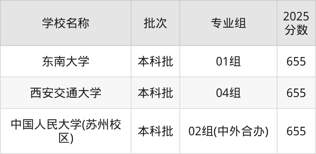 北京高考录取分数线在655分左右的公办大学一共有3所。分别是东南大学(655分)、西安交通大学(655分)、中国人民大学(苏州校区)(655分)