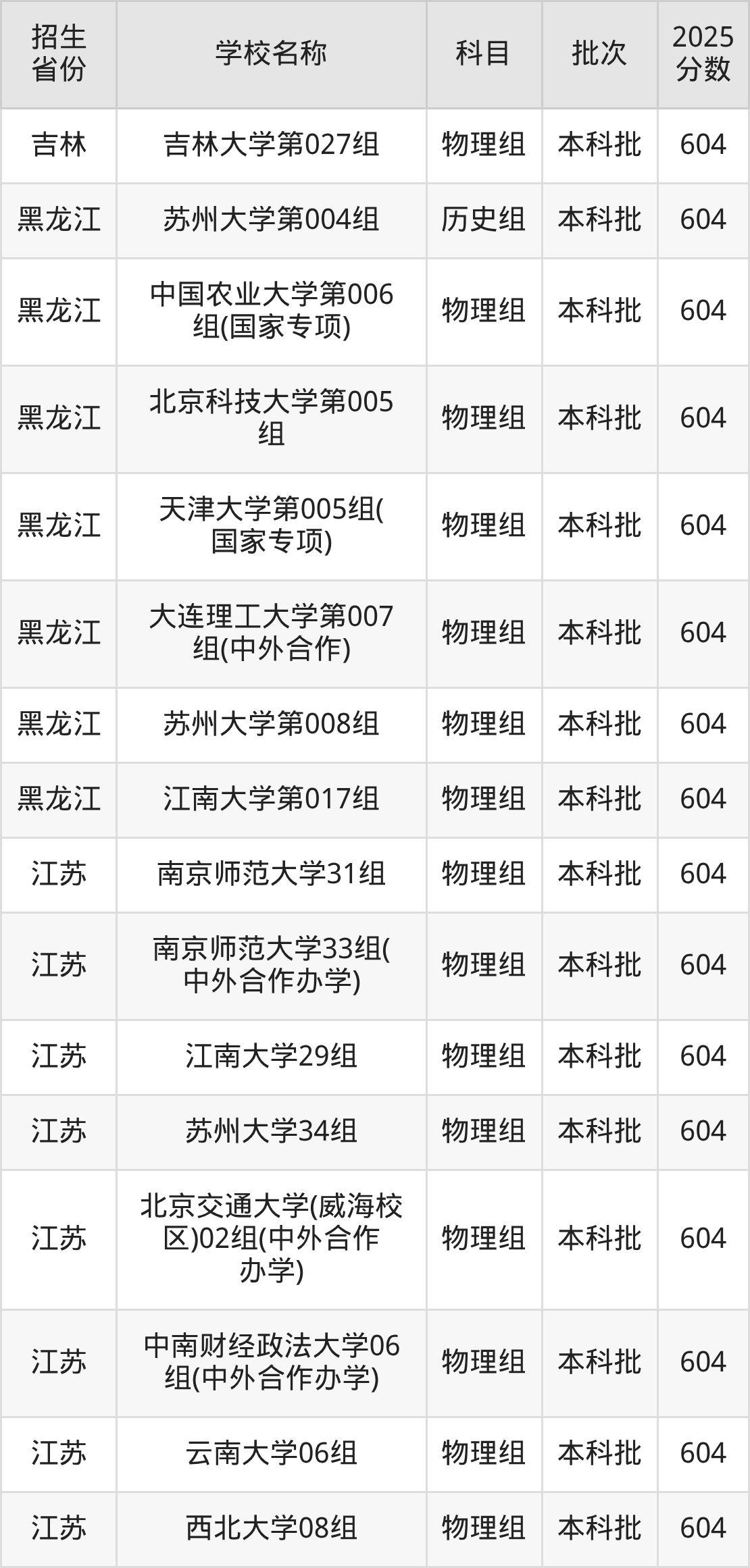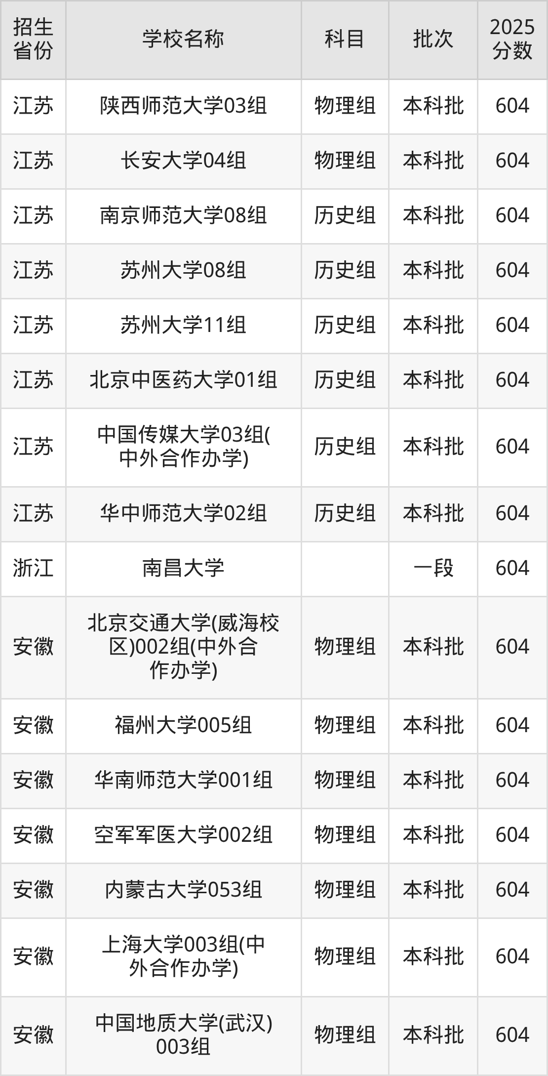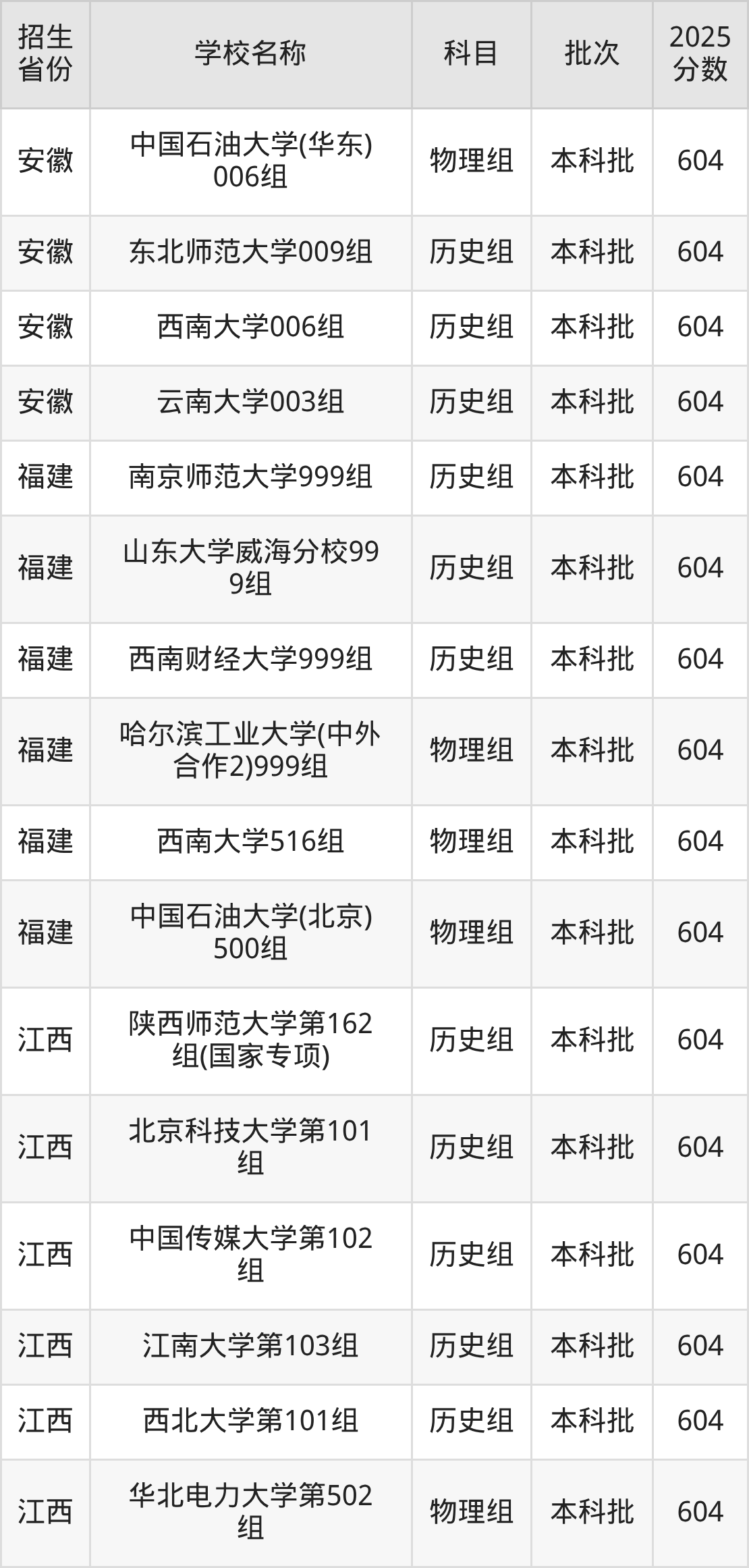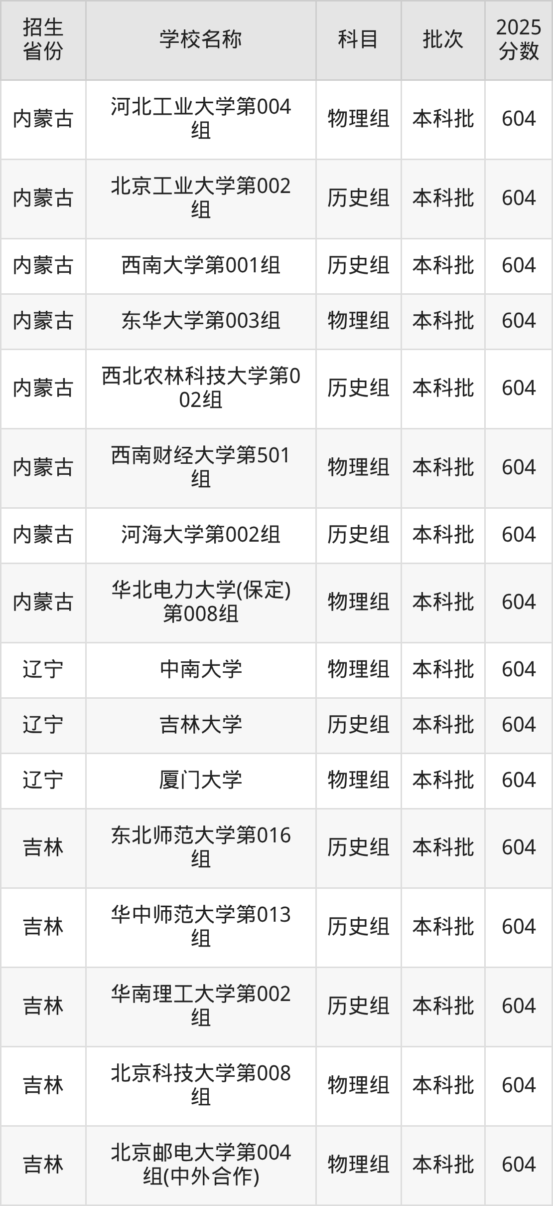 二、各省604分的211大学名单