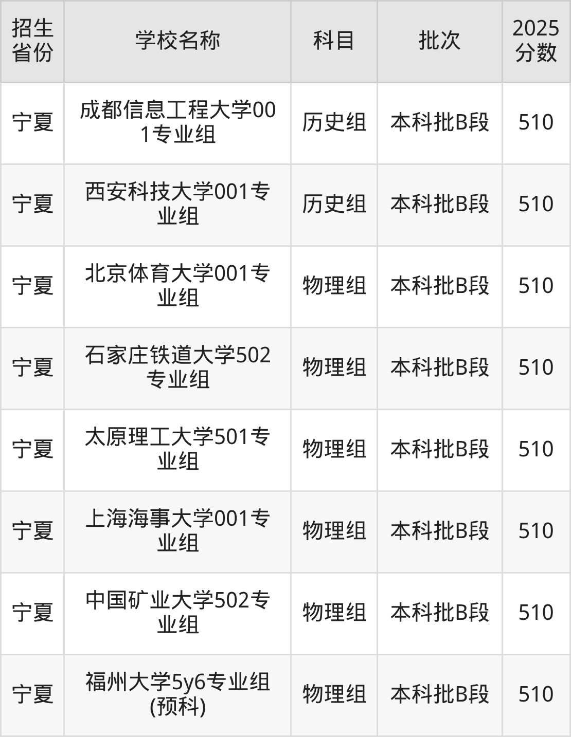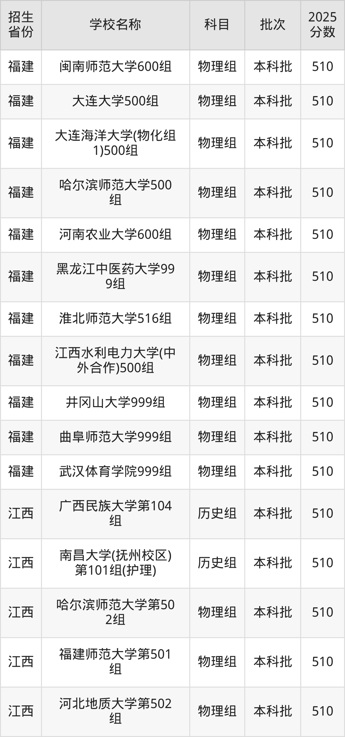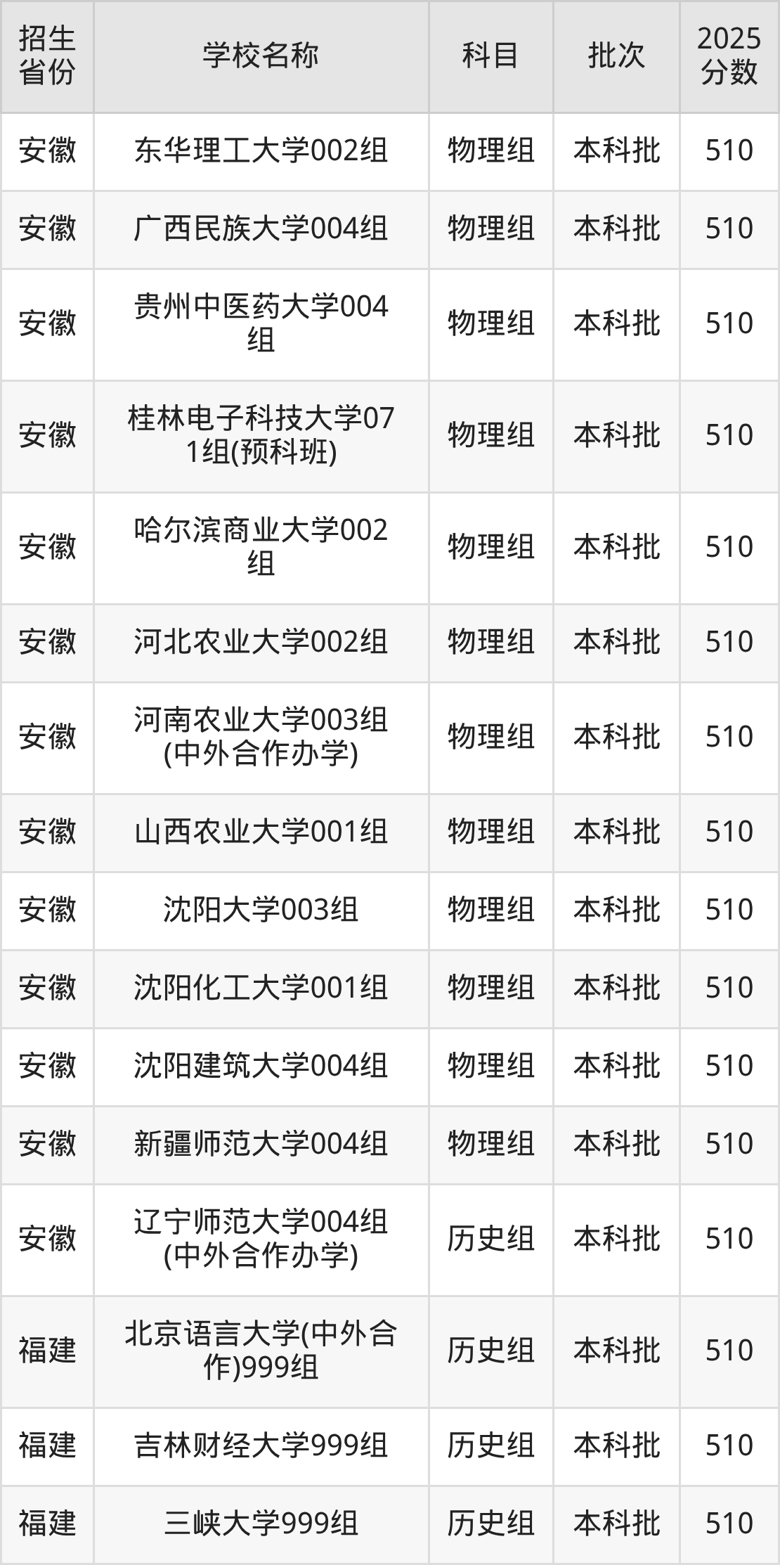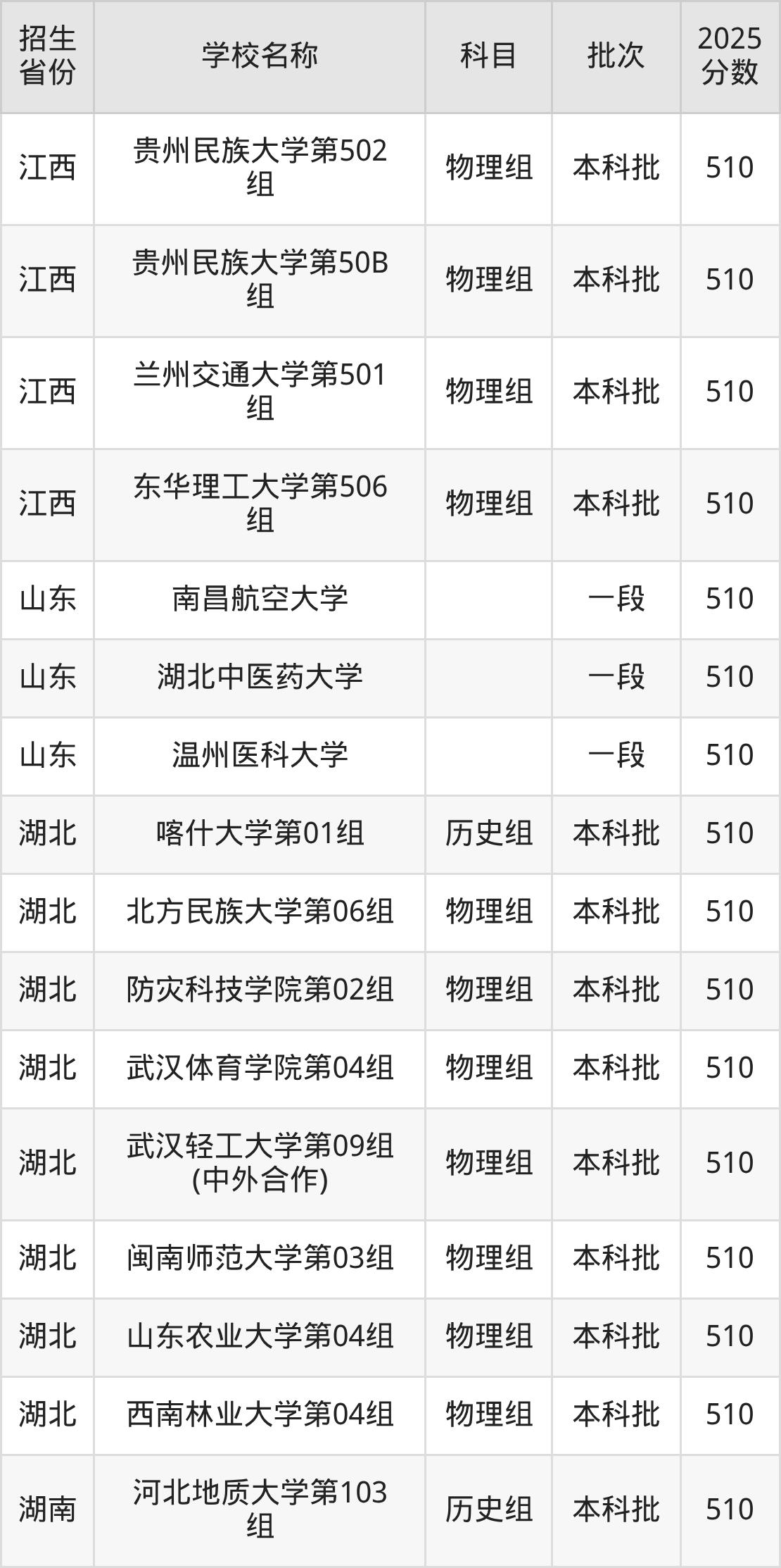 筛选全国各省2025年录取分数线为510分的重点大学如下: