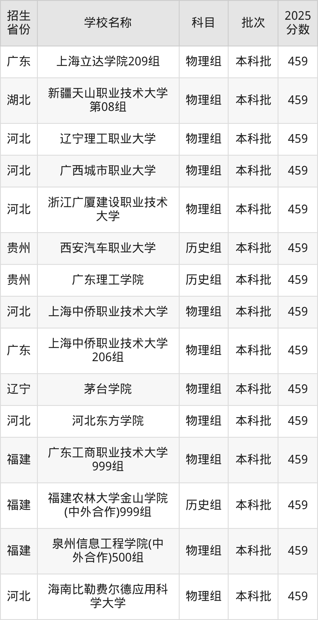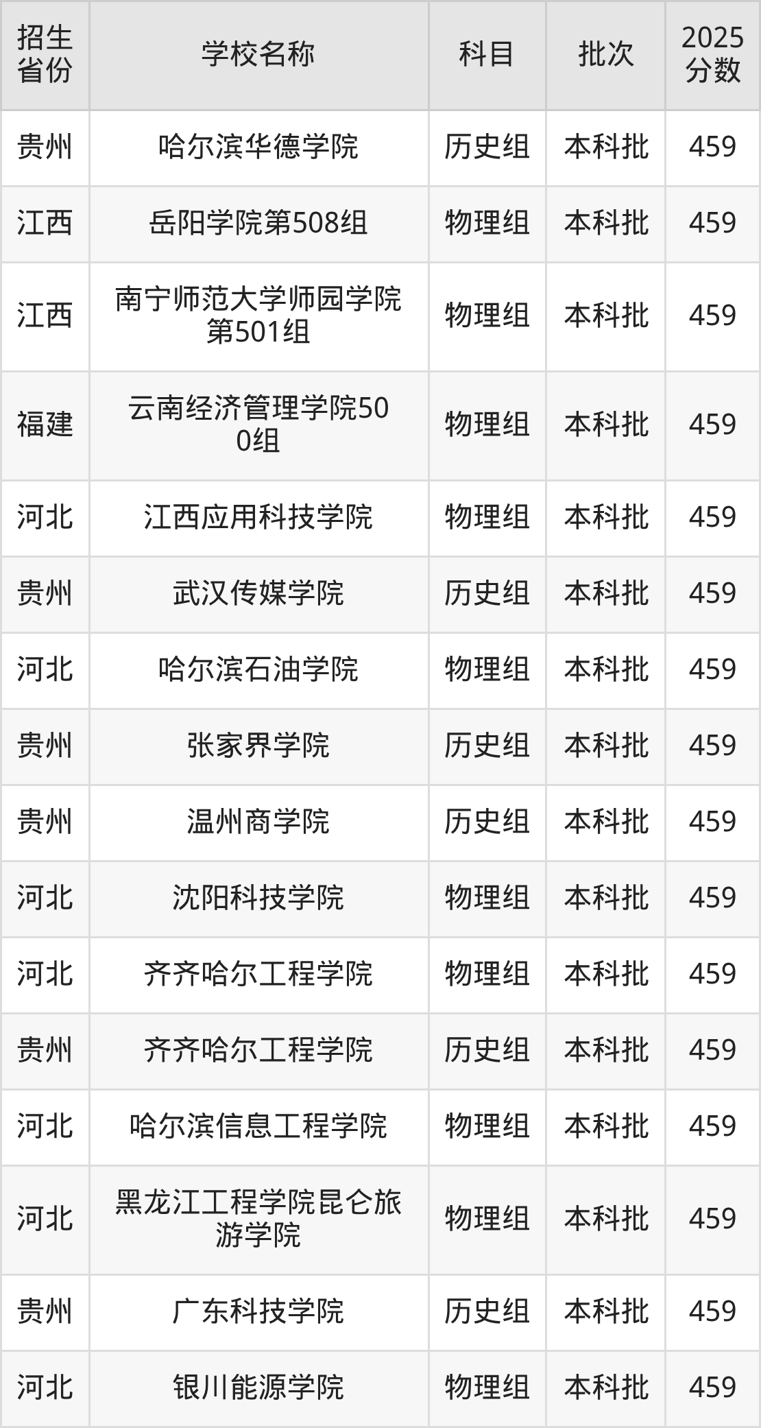 二、各省459分的二本民办大学名单